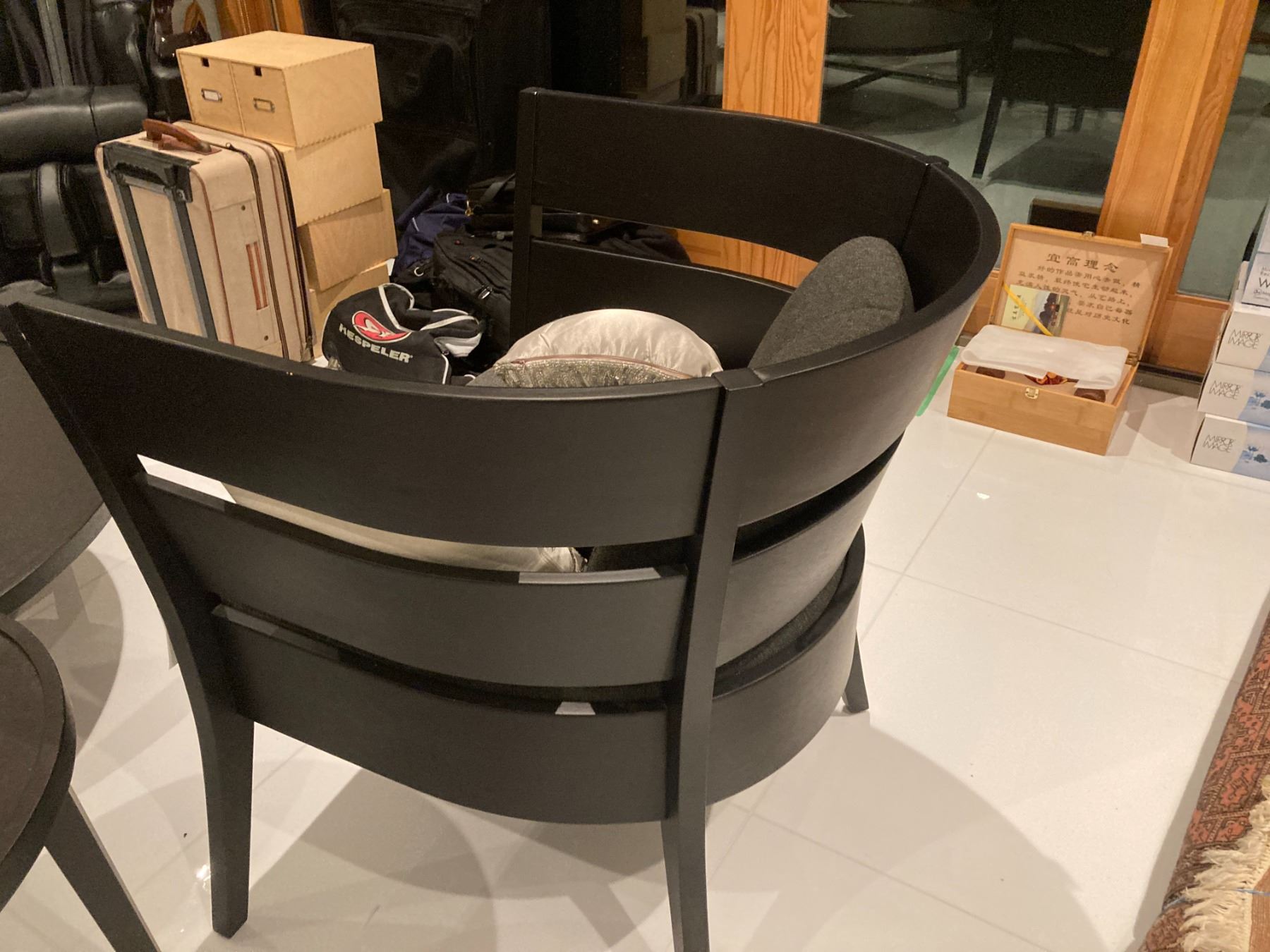 Black chair with grey cushion 32x30x32 Pickup at 11 am