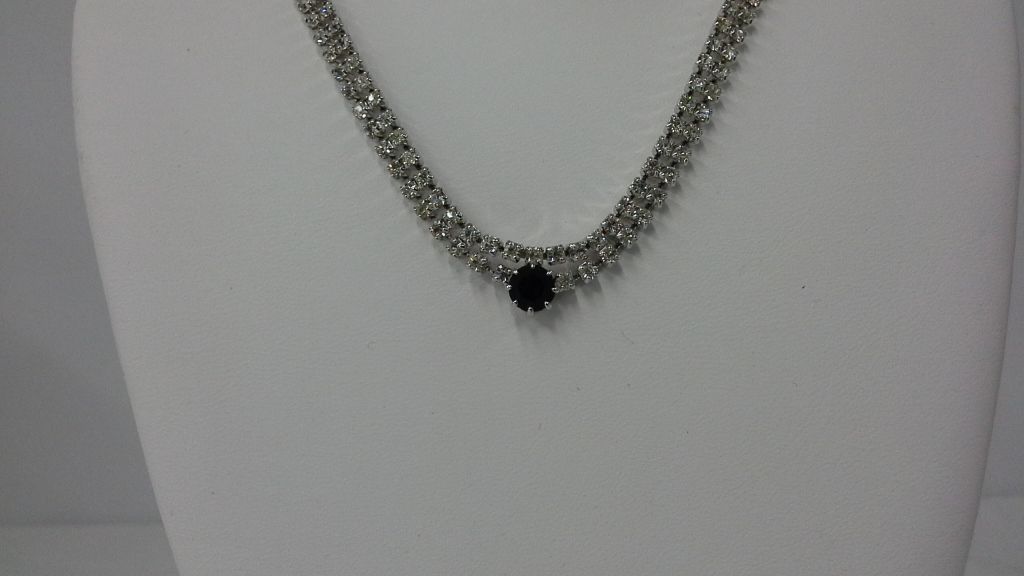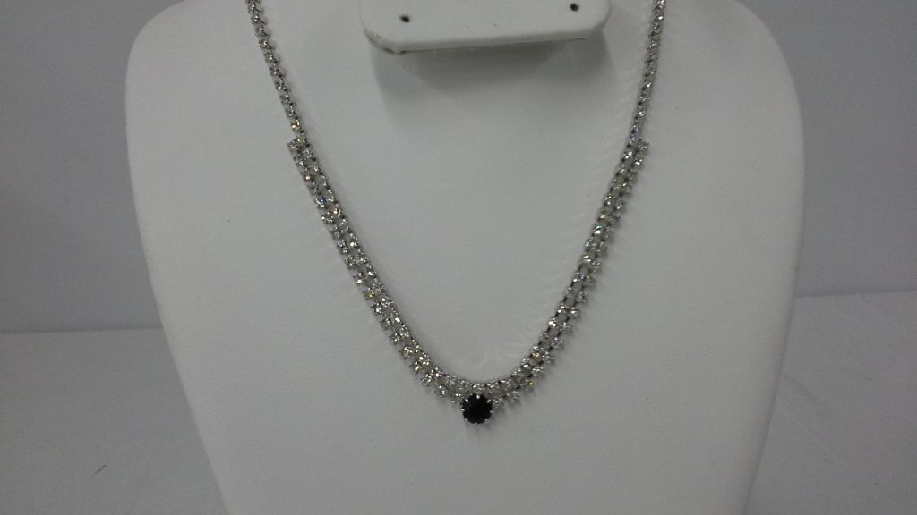 Designer Rhodium Plated 16" Necklace With Clear and Blue Crystals