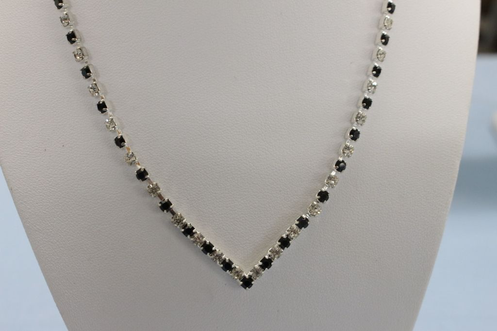 Designer Rhodium Plated Necklace With Blue and Clear Crystals