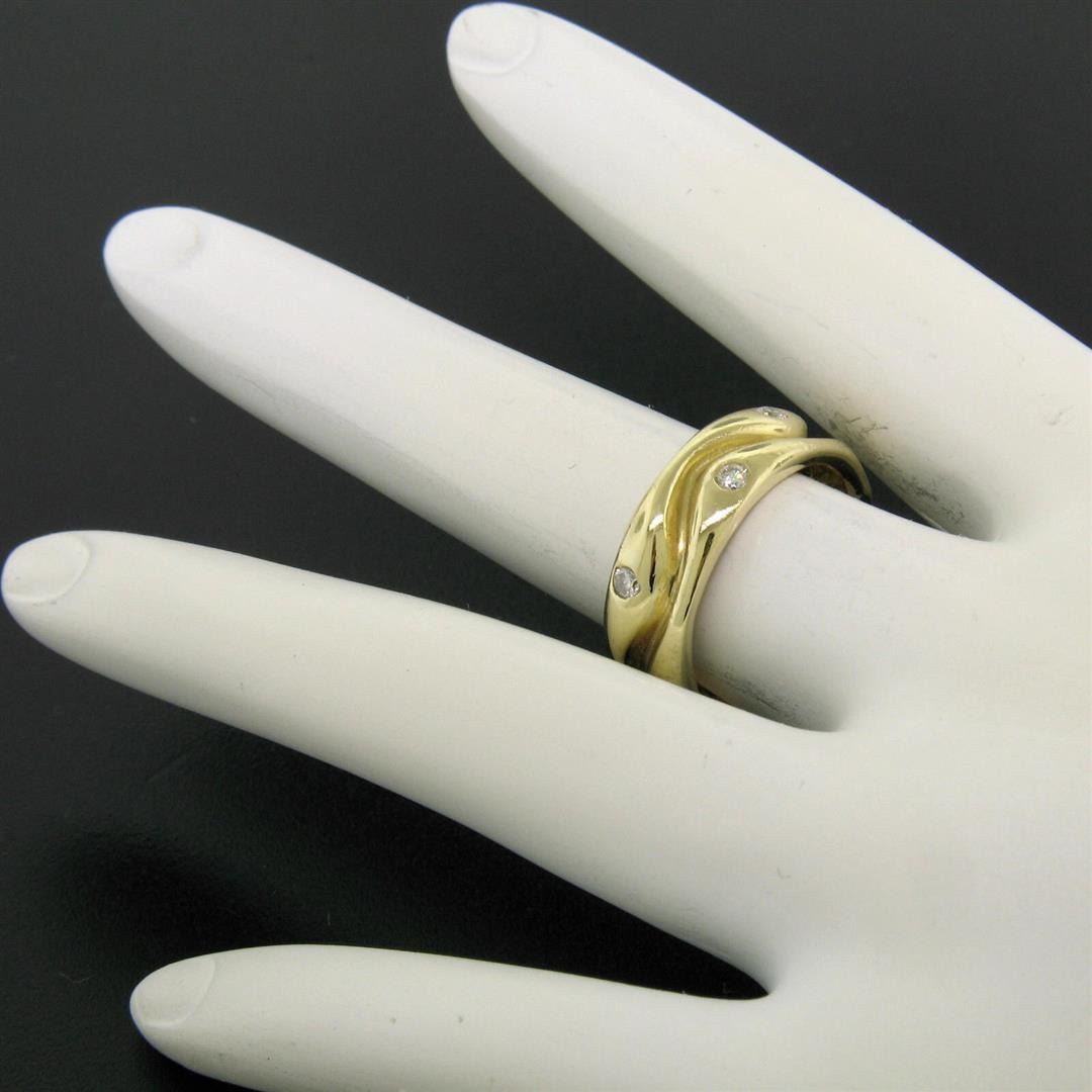An estate solid 18k yellow gold wavy eternity band ring by Sam Lehr, featuring 8 round brilliant cut natural diamonds (G/H- VS1/VS2; 0.33ctw). The ring is size 6.0, weighs a total of 8.48 grams, and measures 6.62mm wide.