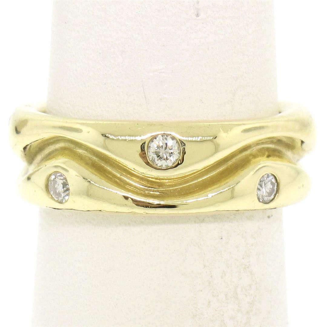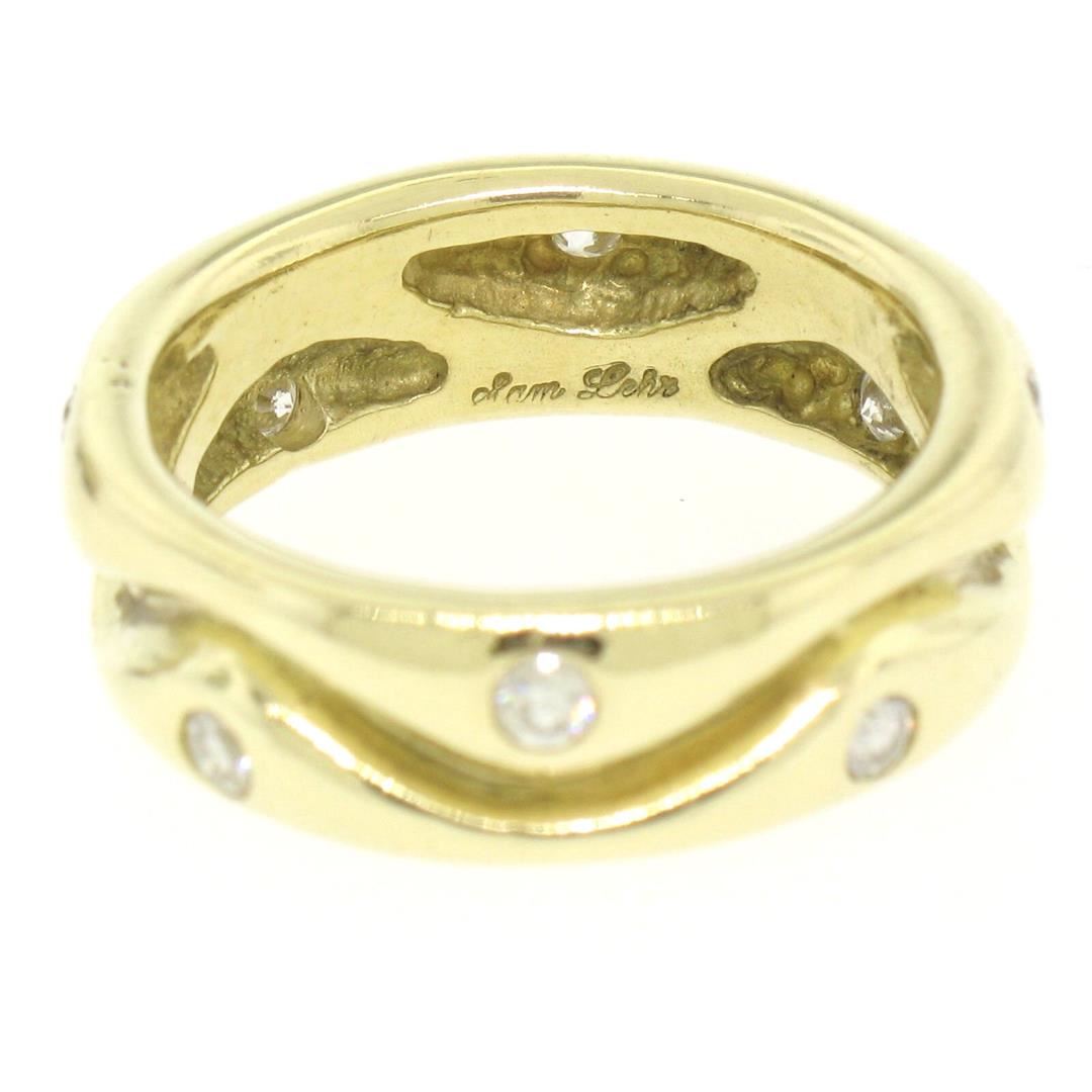An estate solid 18k yellow gold wavy eternity band ring by Sam Lehr, featuring 8 round brilliant cut natural diamonds (G/H- VS1/VS2; 0.33ctw). The ring is size 6.0, weighs a total of 8.48 grams, and measures 6.62mm wide.