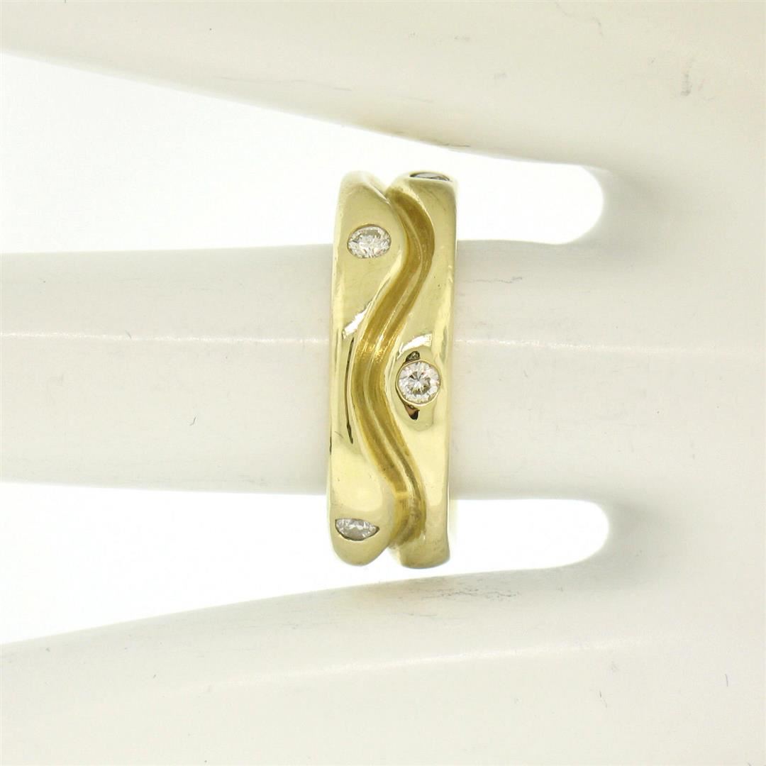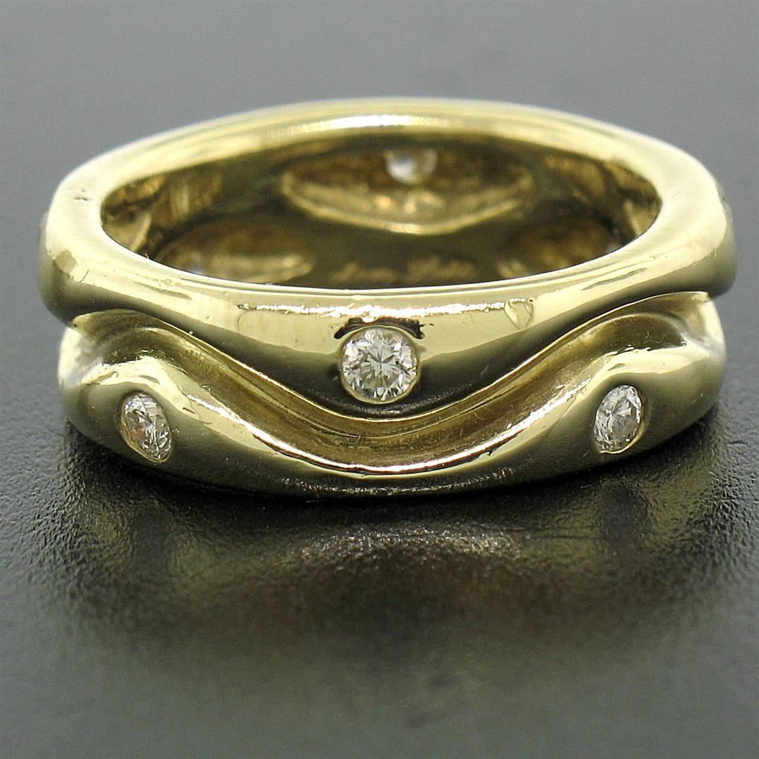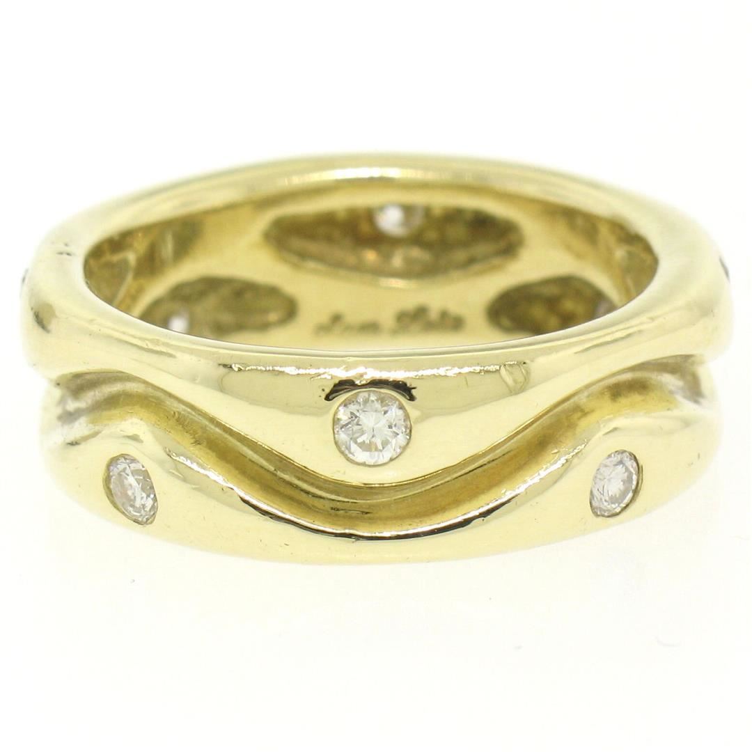An estate solid 18k yellow gold wavy eternity band ring by Sam Lehr, featuring 8 round brilliant cut natural diamonds (G/H- VS1/VS2; 0.33ctw). The ring is size 6.0, weighs a total of 8.48 grams, and measures 6.62mm wide.