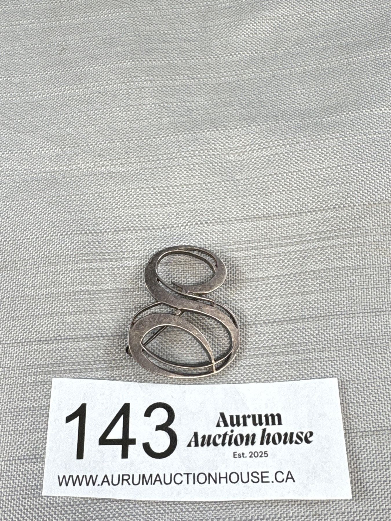Designer Signed K&L 835 Silver Antique Letter S Initials Brooch Large! Beauty!