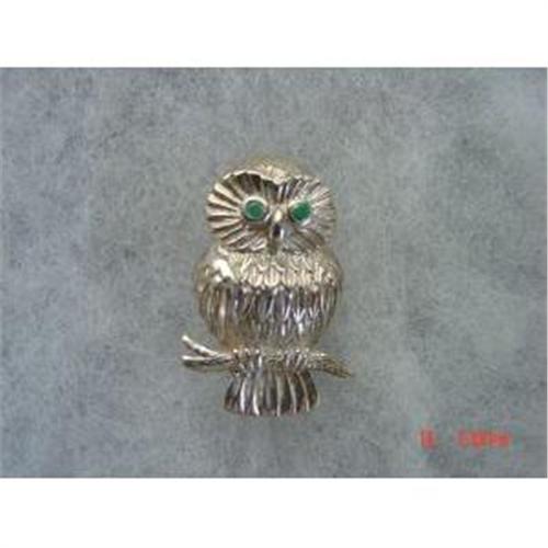 <tr><td>Title:Designer Signed Sterling Owl Brooch Emerald</td></tr>