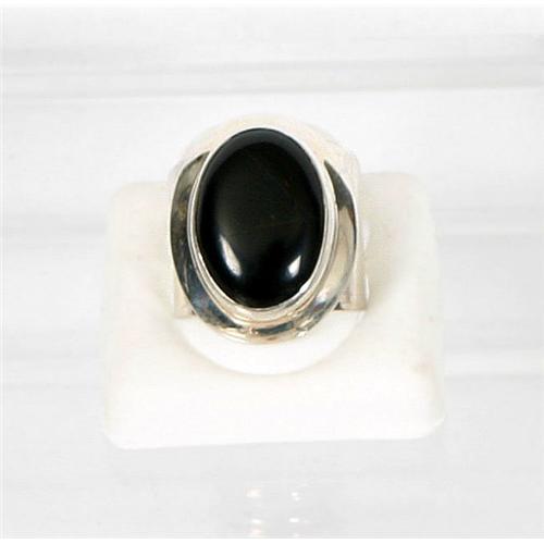 <tr><td>Title:Designer Sterling Silver Oval Onyx Ring </td></tr>