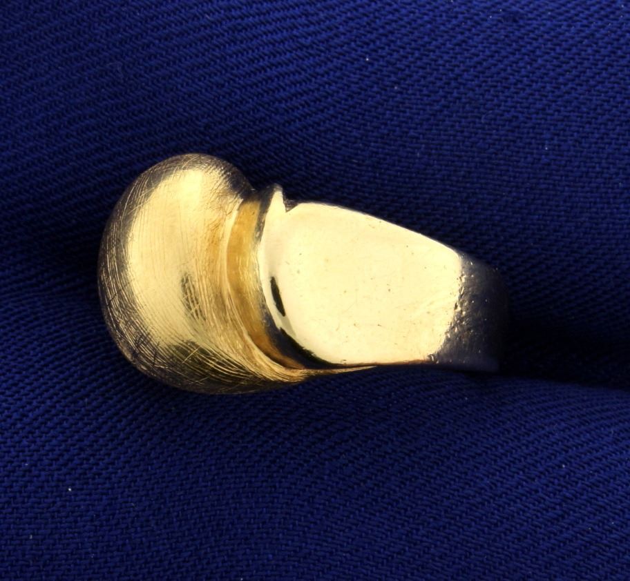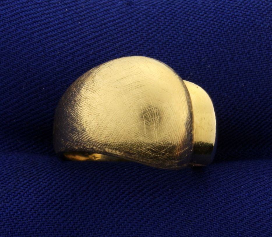 In 14k yellow gold with a very unique style. Size 5. 9.1g.