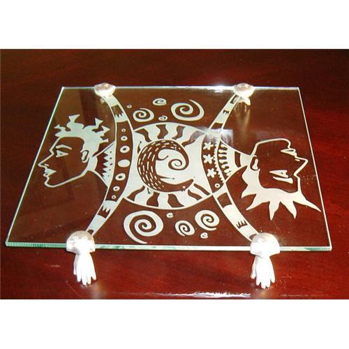 <tr><td>Title:Designer glass cutting board with pewter feet</td></tr>