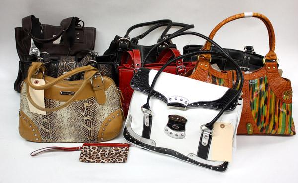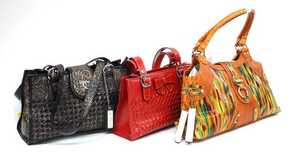 (lot of 9) Designer leather shoulder and handbags by Tignanello and Sharif Studio in various colors, patterns, and styles