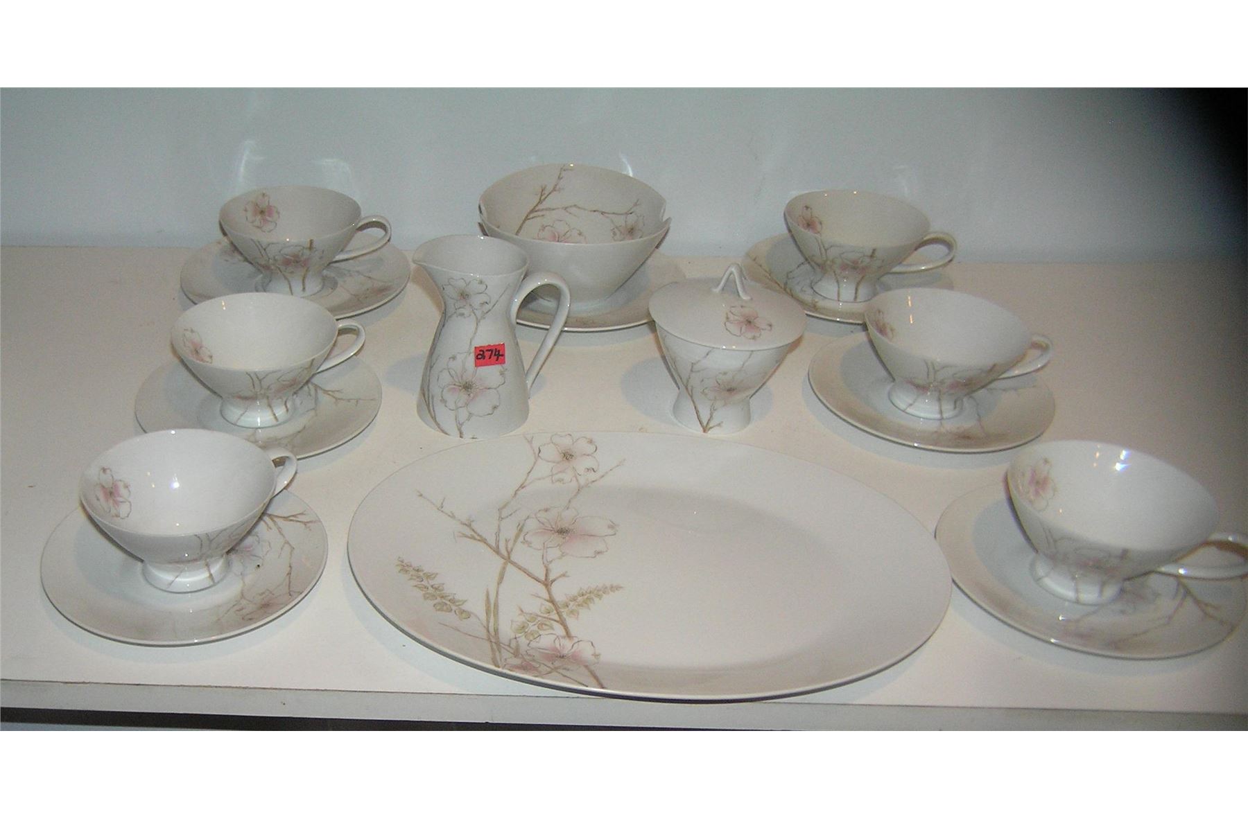 Large 39 piece designer signed Rosenthal dinnerware set great midcentury modern floral blush pattern signed Raymond Loewy made in Selb Germany circa 1950's-60's service for 6 est. value $500.00-$600.00