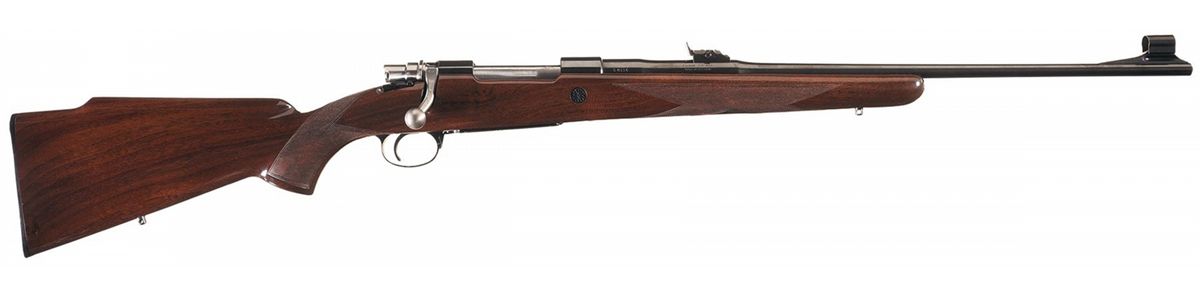 Manufactured in Belgium with a hooded ramp front sight and a adjustable notch rear sight. The floor plate and trigger guard are lightly engraved with gold filling. The receiver is tapped for scope mounts. Mounted on a deluxe dark walnut checkered pistol grip stock with a raised cheekpiece, high comb, sling swivel studs and a Browning buttplate.