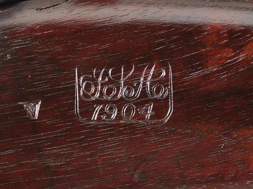 Good as assembled/refinished. The stock is very good with most of the original oil finish, sharp edges on the grasping grooves and a fine restamped final inspection stamp and proof mark. The buttplate is original to the rifle and retains 75% of the blue finish with silvered case colors on the trap door. The rifle receiver, barrel and bolt body have been re-blued and the other components retains 30% of the military blue finish. The markings on the barrel and receiver are clear. This rifle represents a great opportunity to add a representative "Rod Bayonet' Model 1903 rifle to a U.S. martial arm collection.