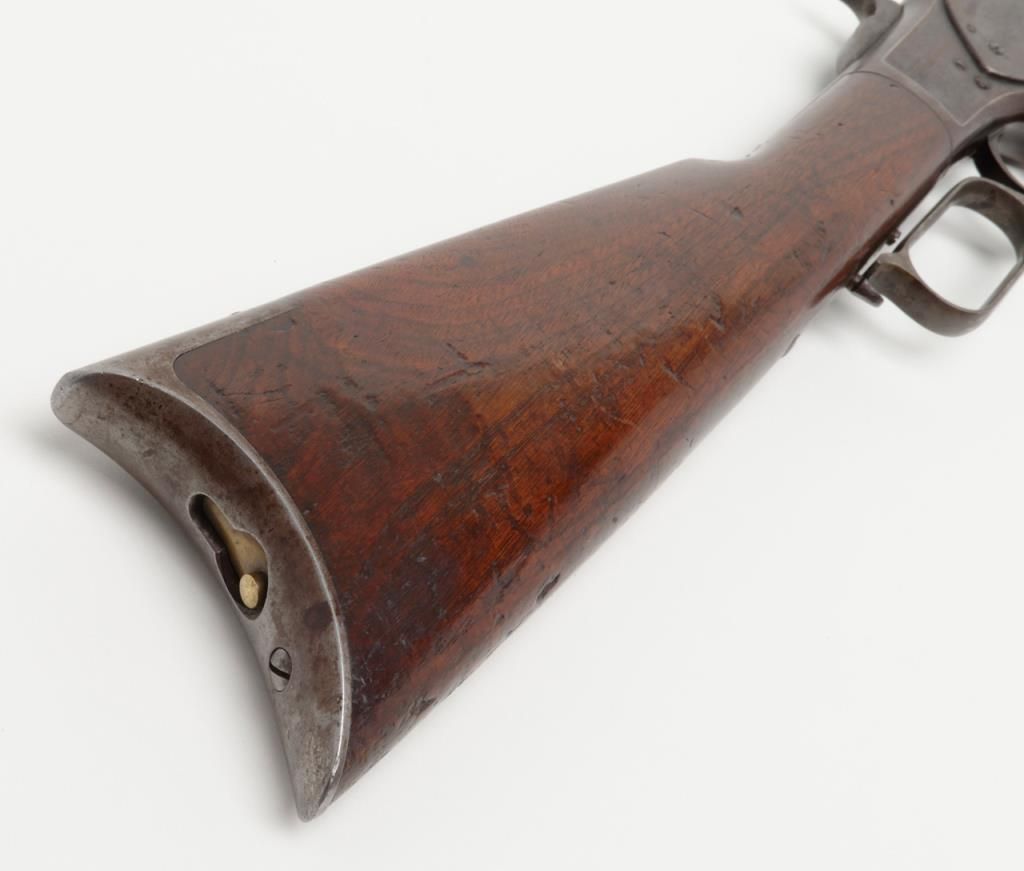 Desirable Winchester 1st Model 1873 lever action rifle, .44 W.C.F. cal., 24” round barrel, blue finish, wood stocks, thumbprint dust cover, correct Winchester sights, wood stocks, #21053 in overall very good to near fine condition showingapprox. 30% original blue on barrel with balance gone to a brown patina, approx. 70% original blue on loading tube, receiver shows approx. 40% original blue finish with balance again going to brown patina; case hardening still visible onhammer and lever; fine bore, crisp action, sharp markings; very good wood with old scattered mars and scratches from carry and storage; hard-to-find these early ‘73’s in this condition. (Antique). Est.: $4,000-$8,000