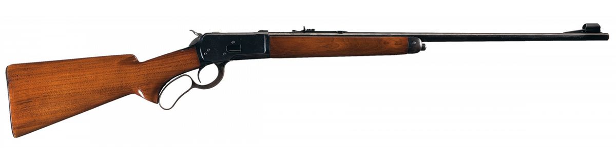 Condition: Very fine. The rifle retains 85% original blue finish showing some minor thinning and light spotting with a smooth brown-gray patina on the lever and buttplate. There are a few scattered areas of pin point pitting. The wood is excellent with some scattered minor handling marks and retaining most of the varnish.