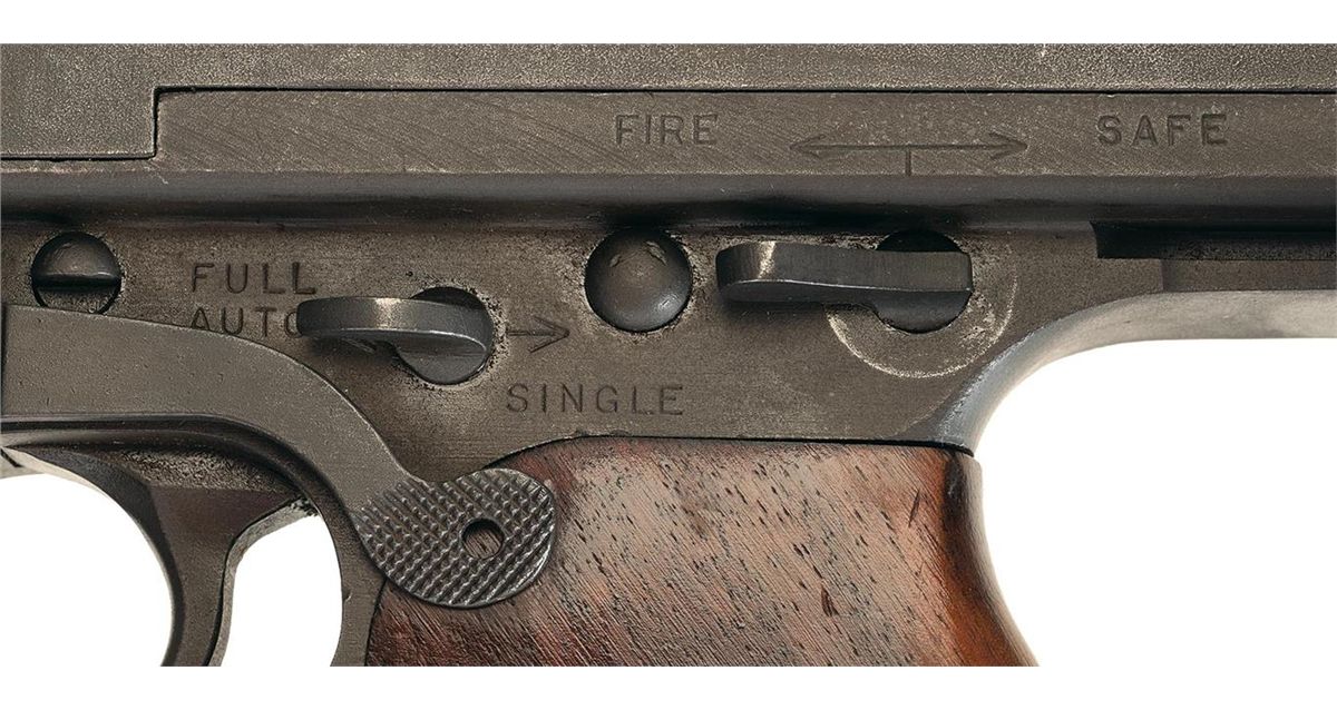 Very fine with 95% of the arsenal refurbished parkerized finish overall with edge and high spot wear from handling and light firing. The wood components are all very fine with 90% of the arsenal refurbished oil finish with only minor handling marks. This is a very nice looking all original WWII type Thompson SMG. NOTE: This item is restricted as a National Firearms Act (NFA), Fully Automatic Weapon that is currently registered with the Bureau of Alcohol, Tobacco Firearms and Explosives (BATF&E) that has been classified as a "Curio or Relic" as defined in 27 CFR, 478.11. These weapons are still subject to the provisions of 18 U.S.C. Chapter 44 and 27 CFR part 478. Before bidding on this item, it is the sole responsibility and obligation of the bidder, buyer or Class 3 dealer to understand and comply with all the State and Federal transfer laws and restrictions that apply in their current place of residence