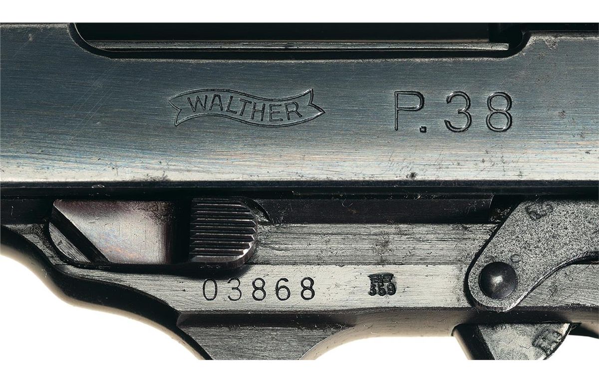 Desirable World War II Nazi Walther Zero Series P38 Semi-Automatic Pistol With Matching magazine