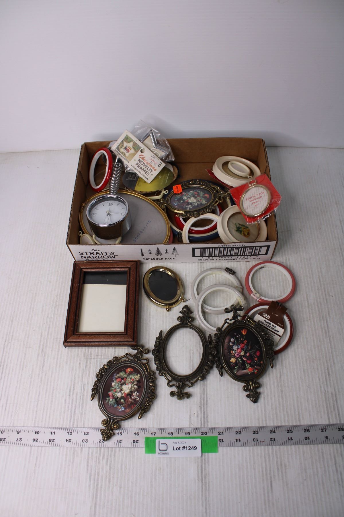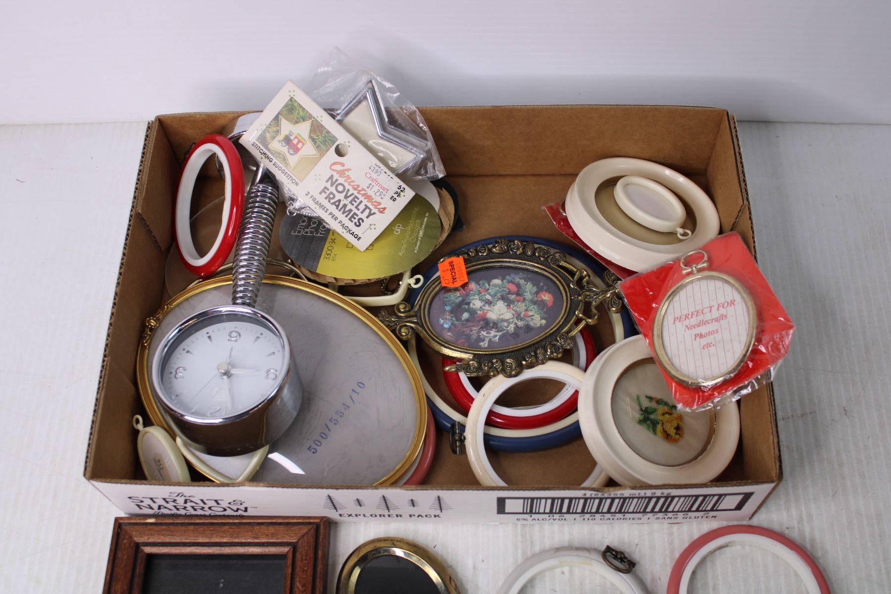Desk Clock, Assorted Embroidery Frames, Picture Frames etc