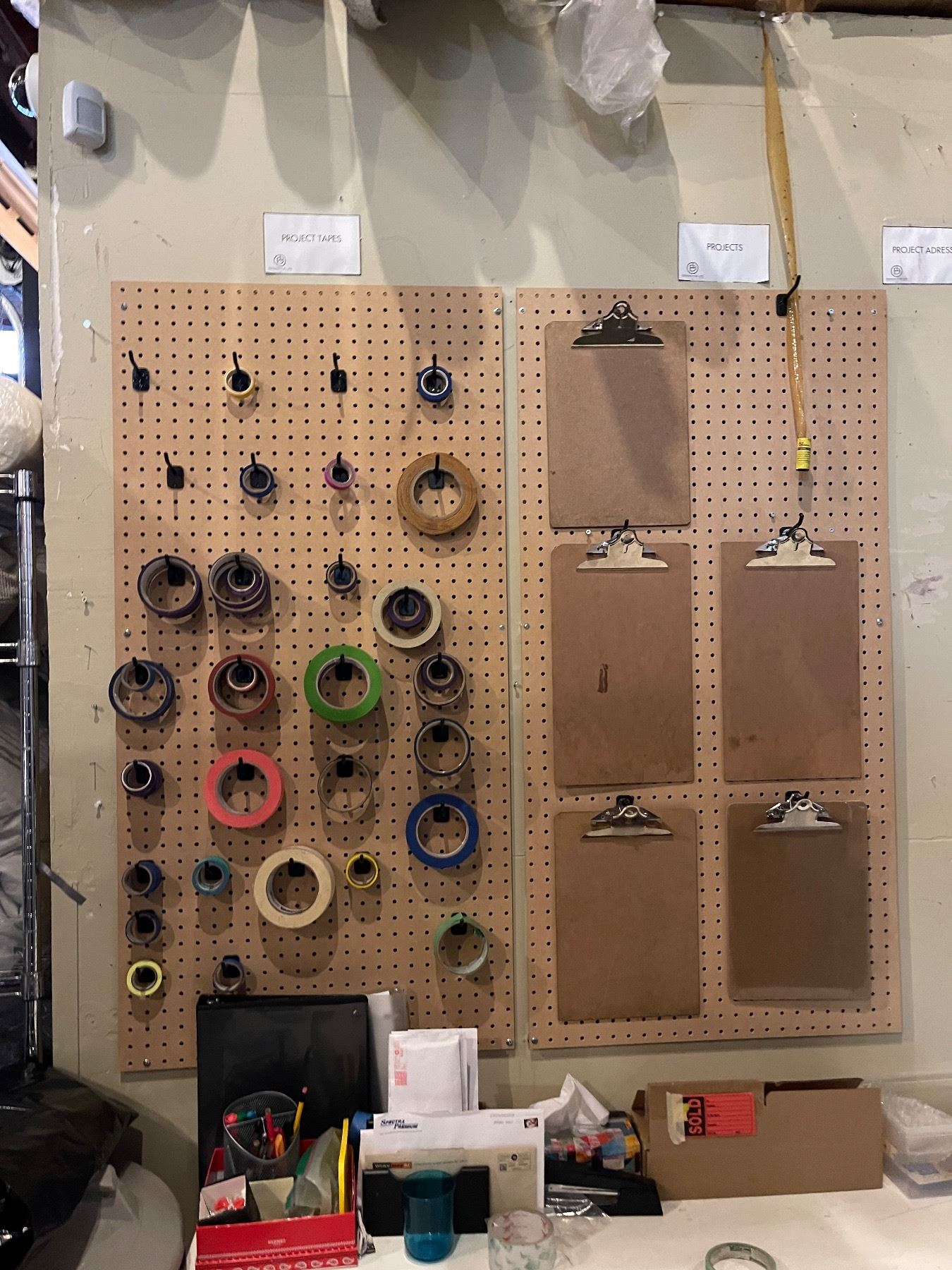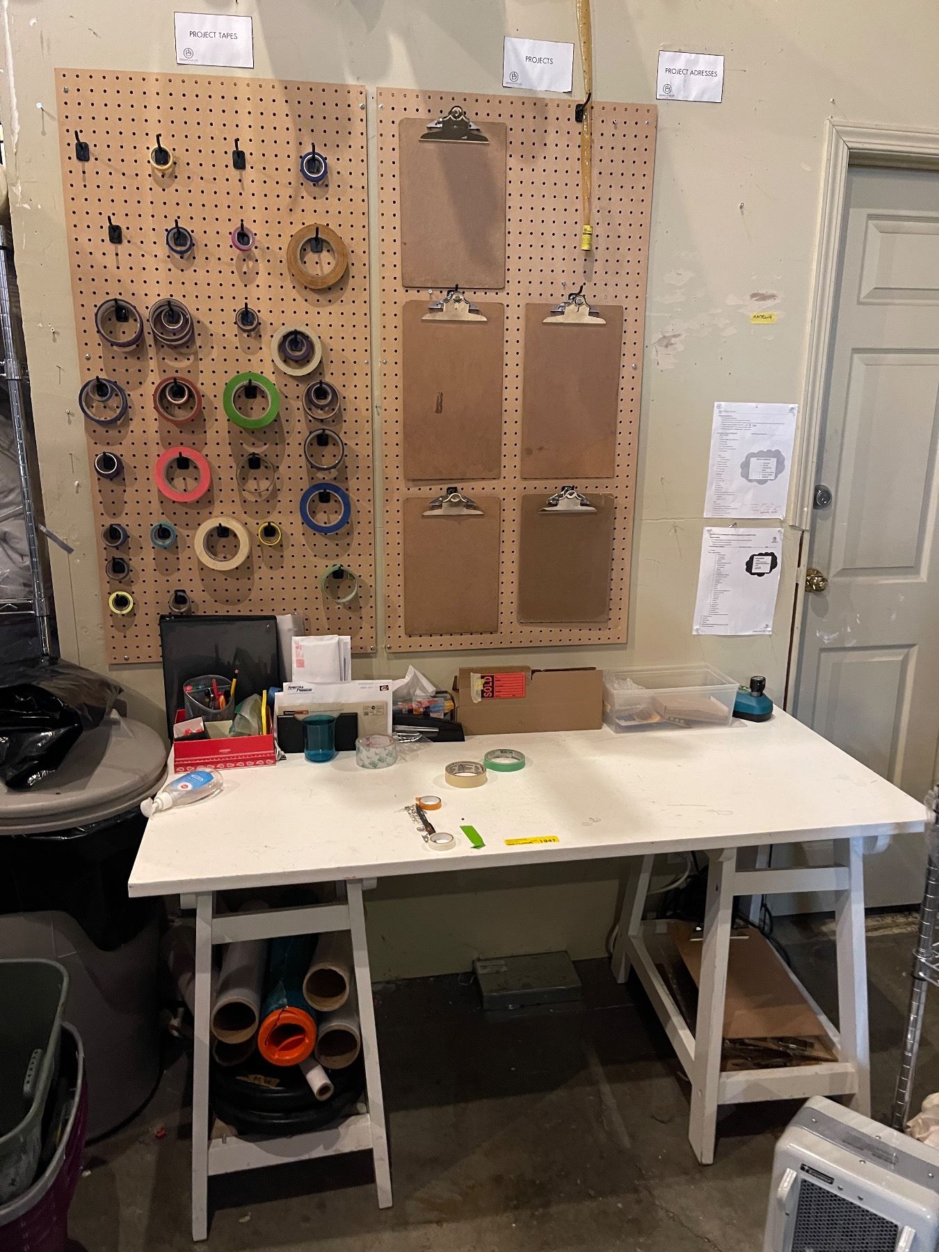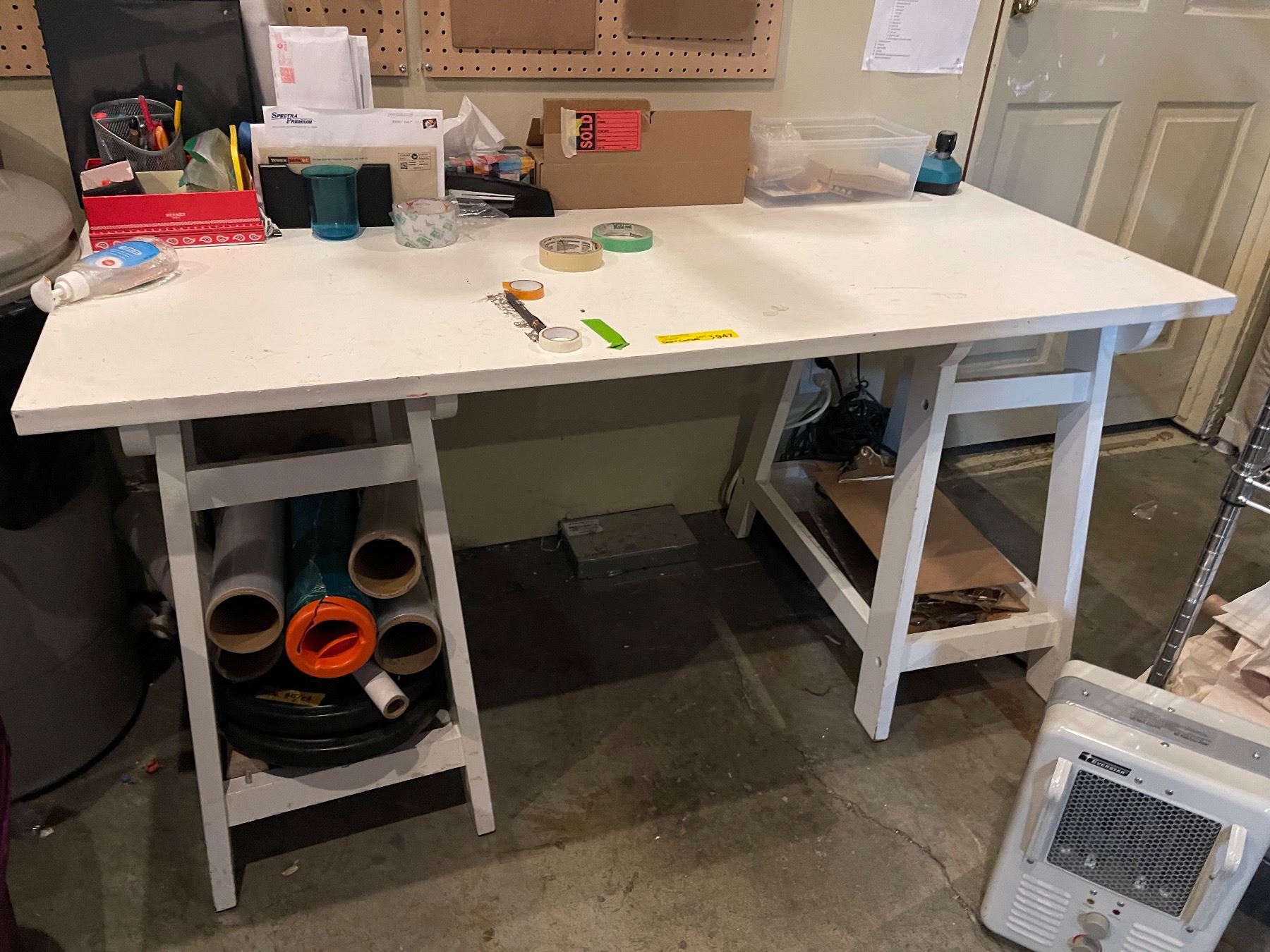 Desk & Contents Including Heater, Clip Boards, Tape, Shrink Wrap, Etc. - 60x28x29.5"