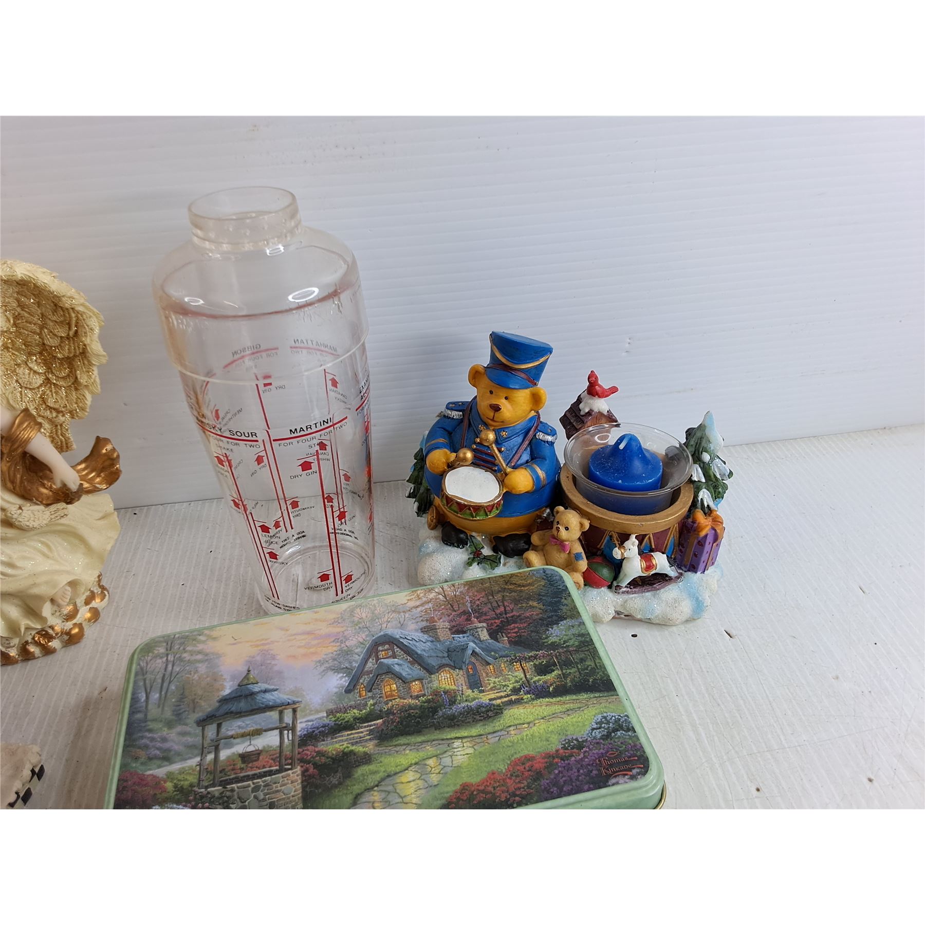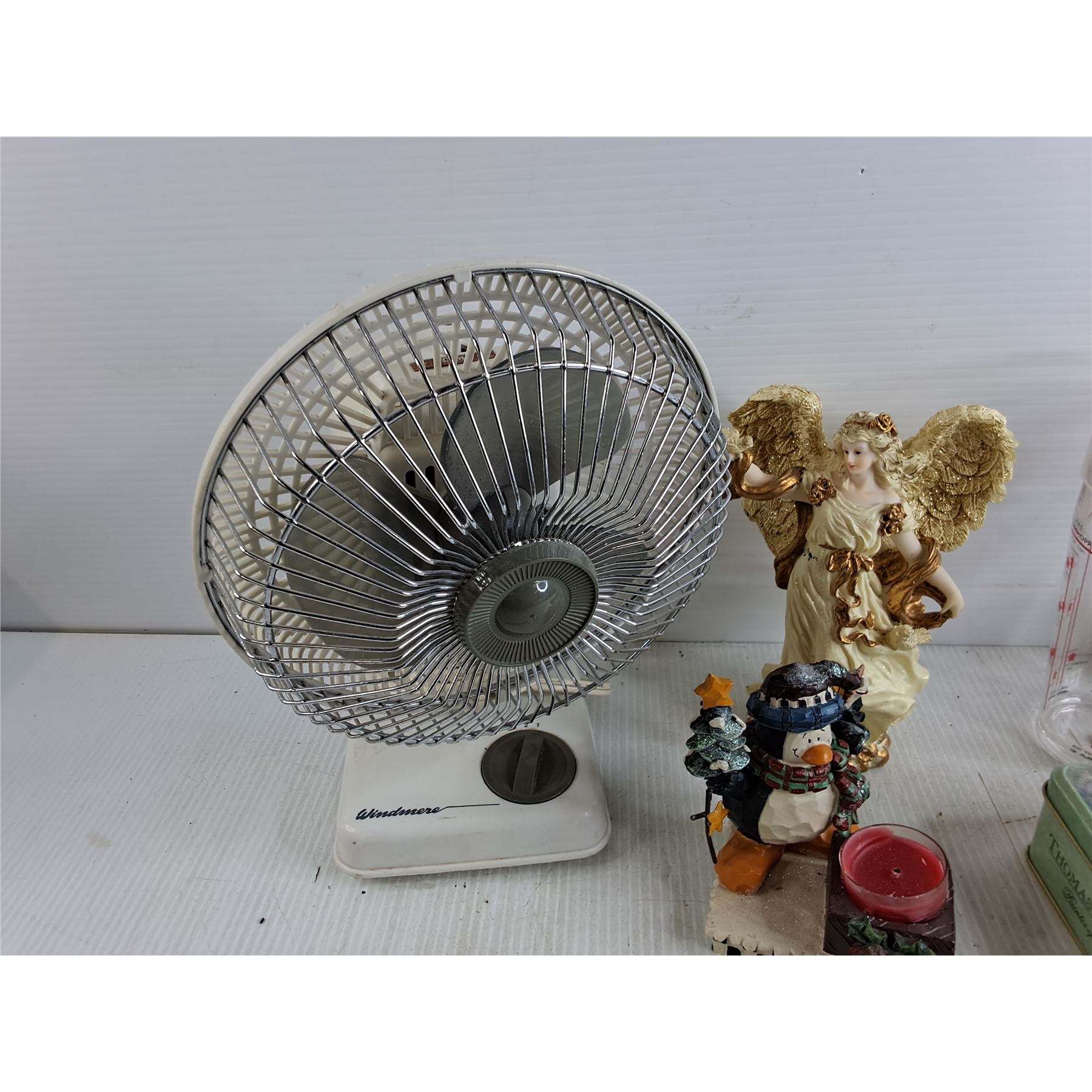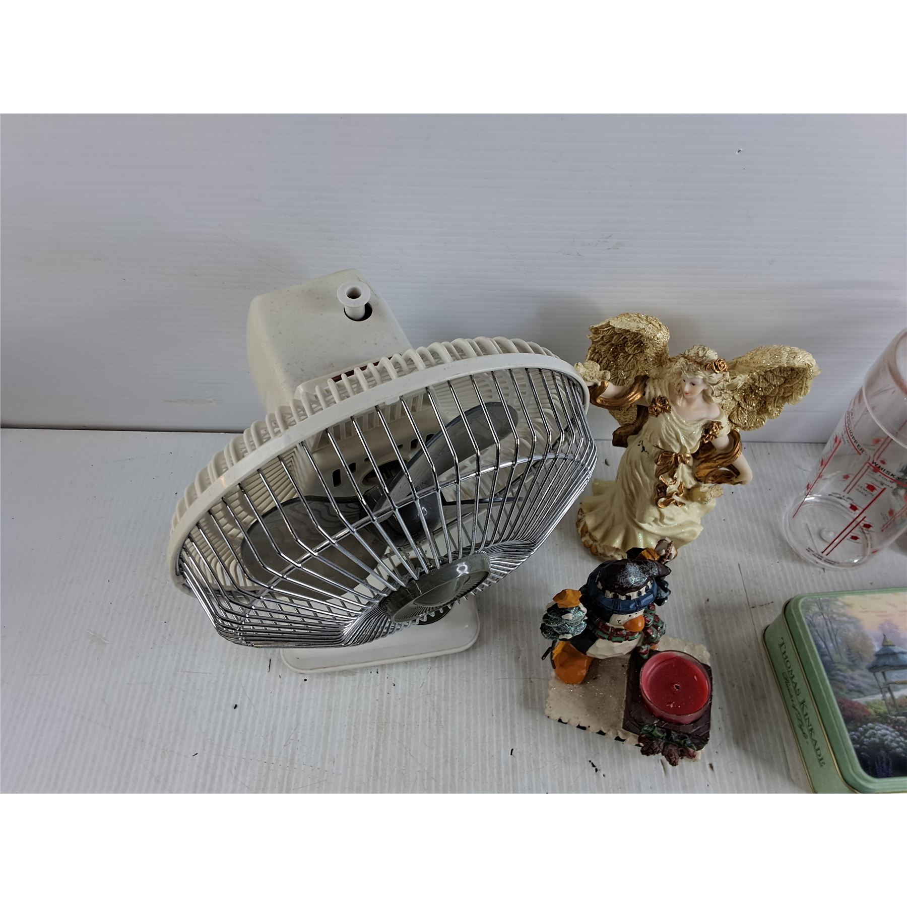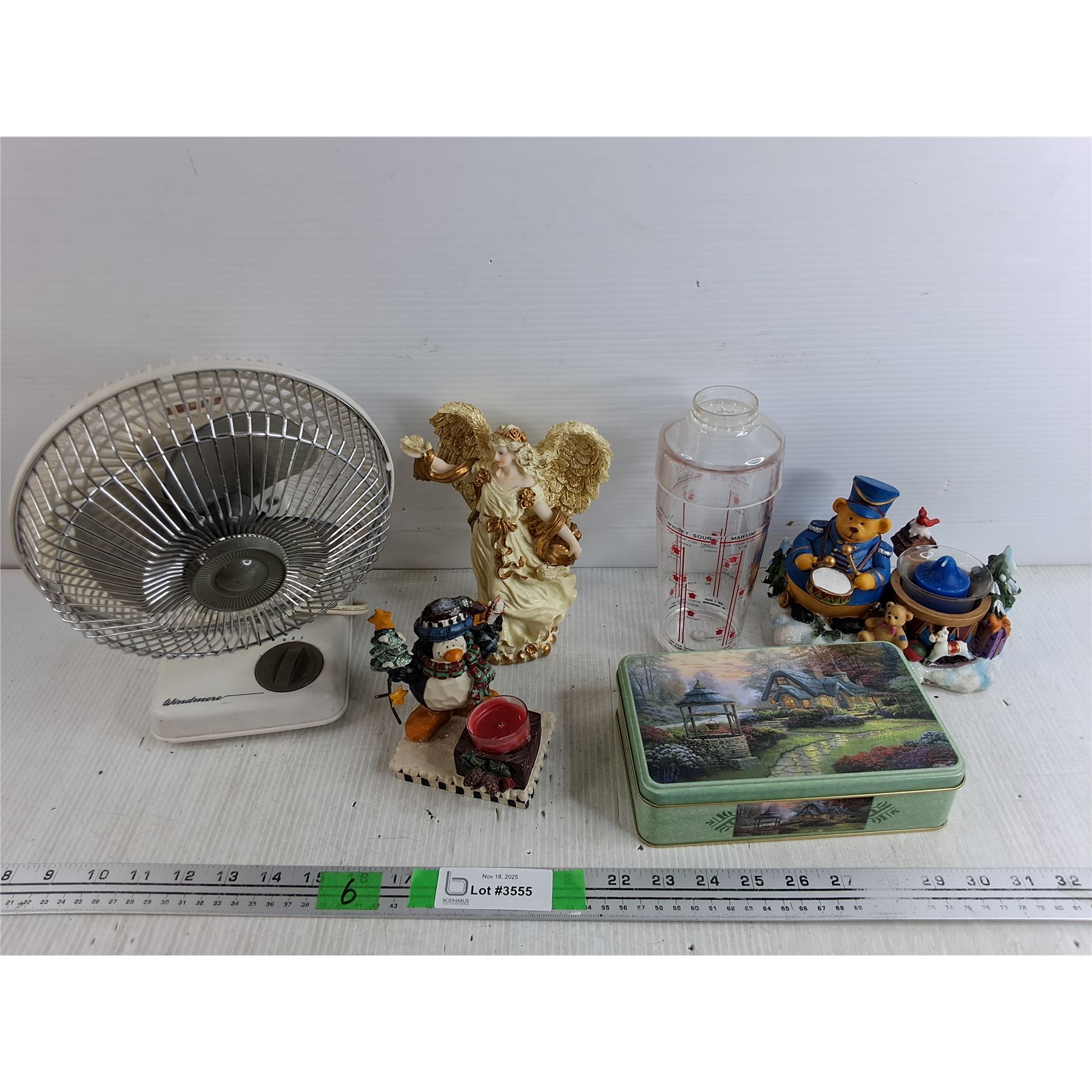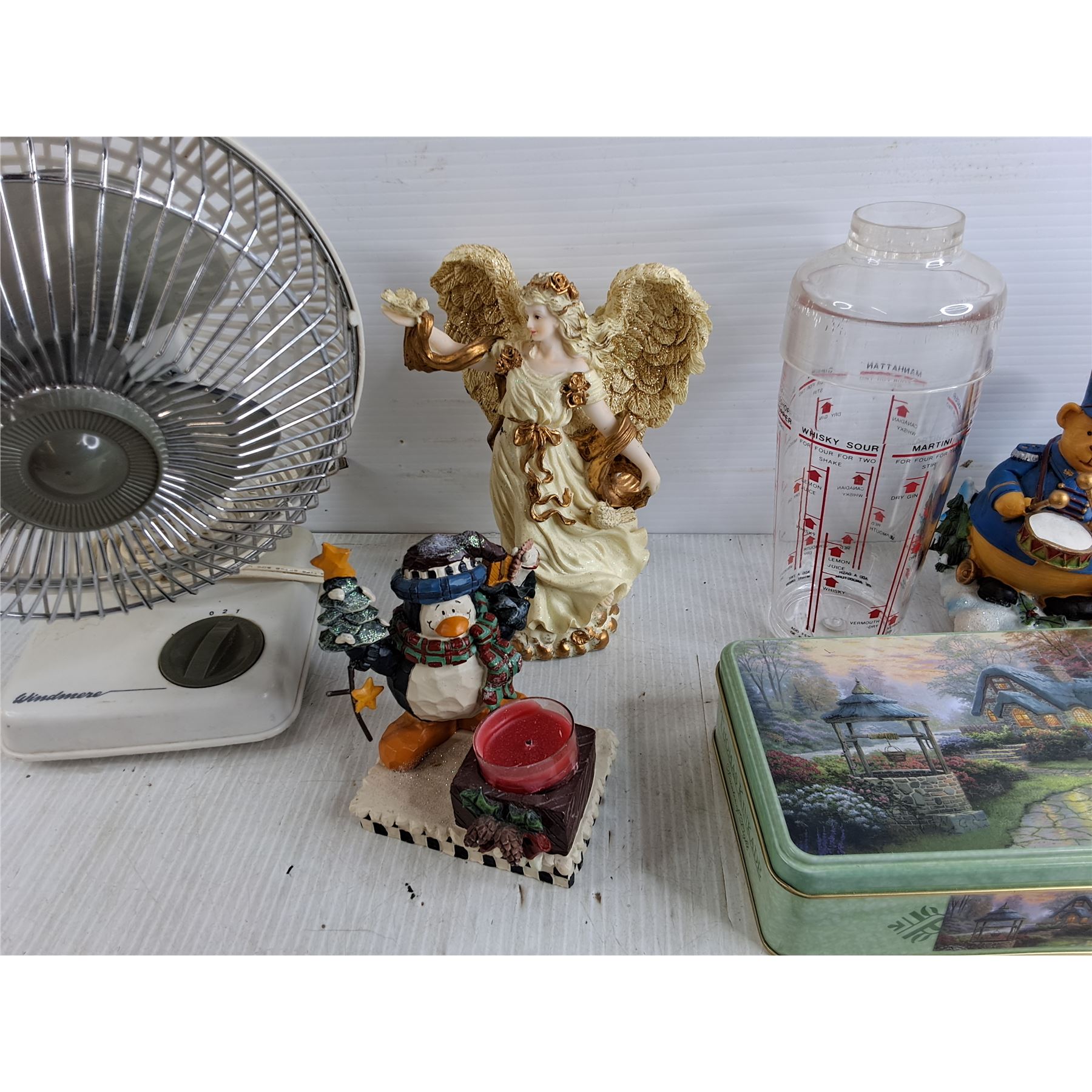 Desk Fan - Powers On, As Is, Angel Figure, Tea Candle Holders, Cocktail Mixer, Tin Box