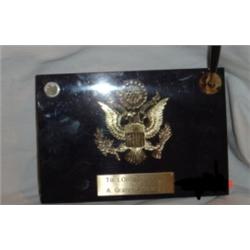 Desk pen holder w/Presidential Gold Seal--engraved "To Lorne Greene from A Grateful Nation"