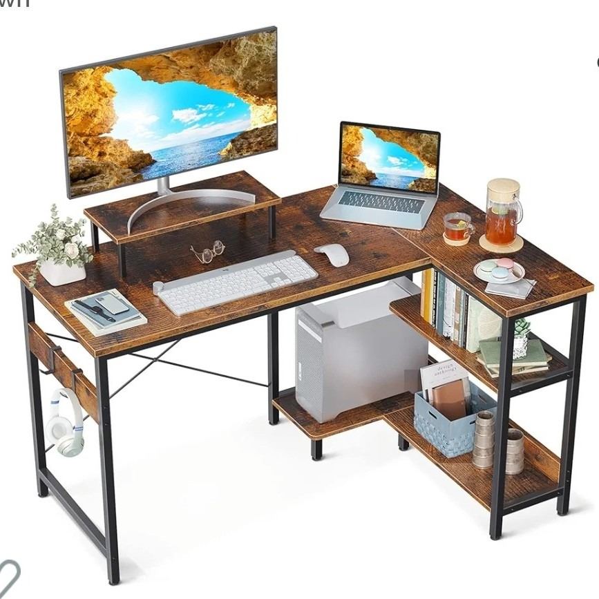 ODK 47in Compact L Shaped Desk With Storage Shelves And Monitor Stand, New Condition