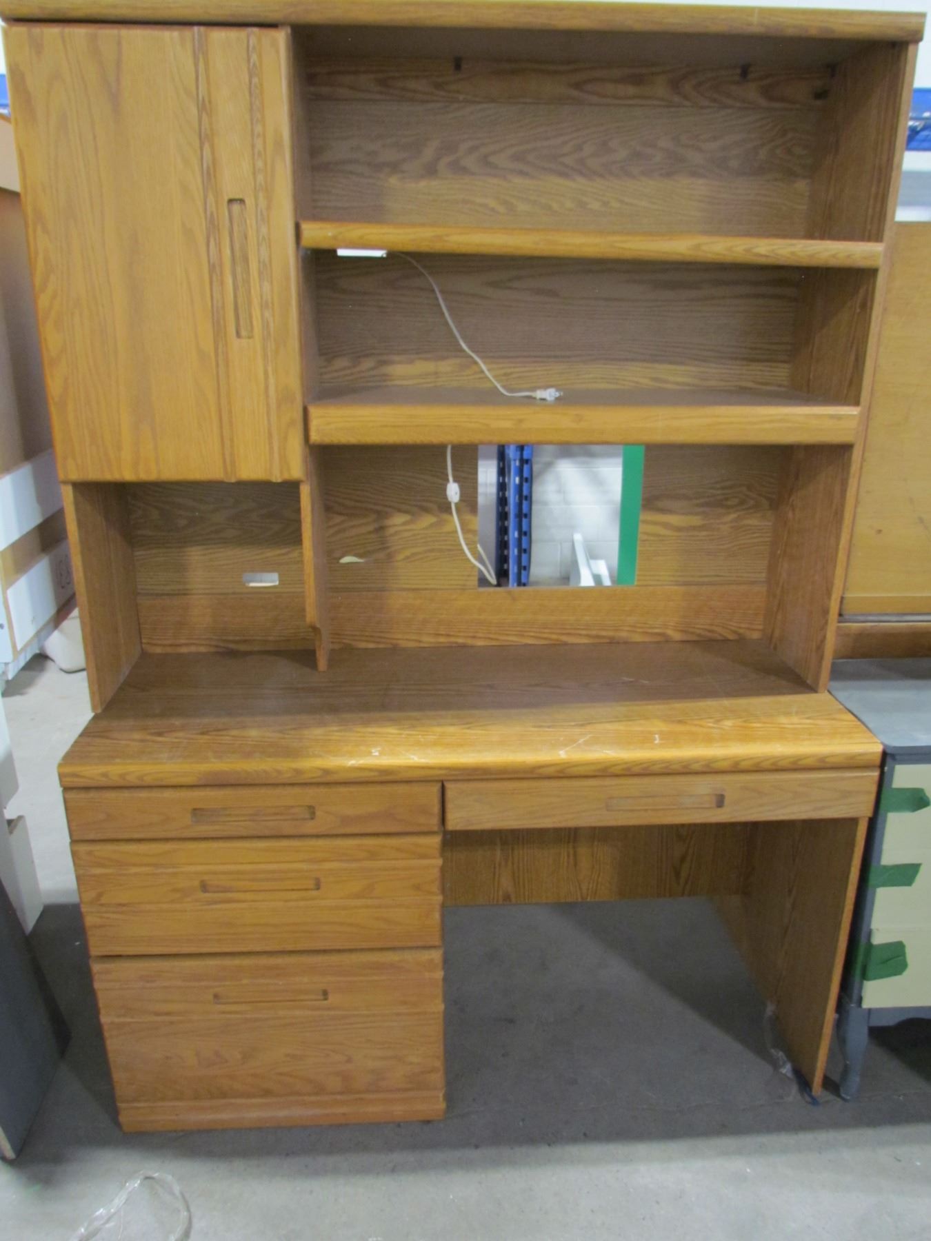 Desk with upper storage and drawer space. (Scratching on the desktop)