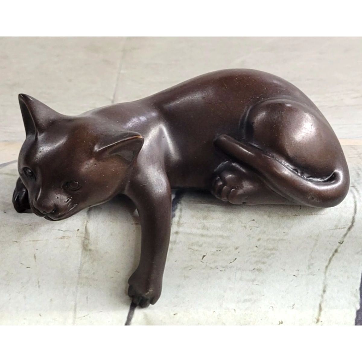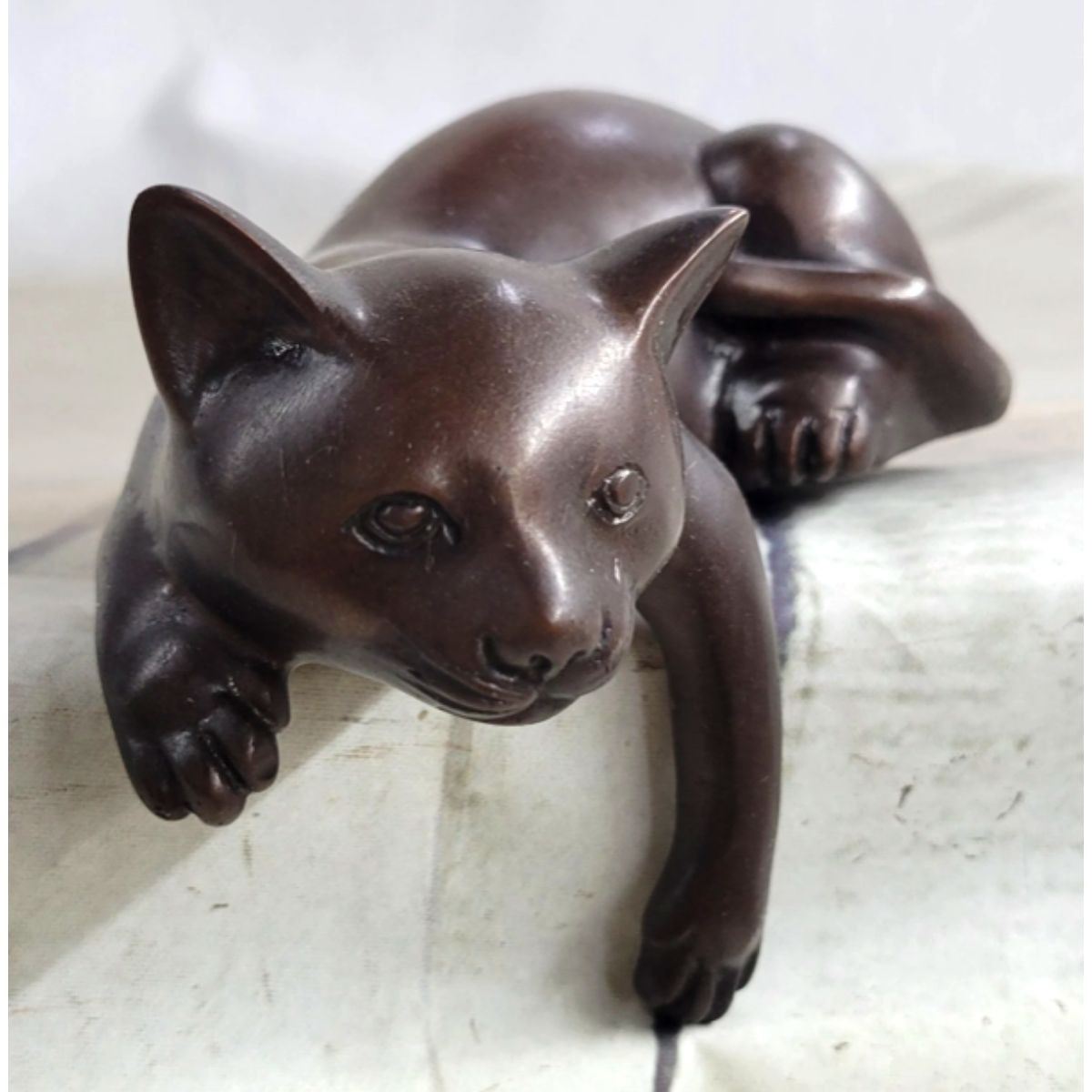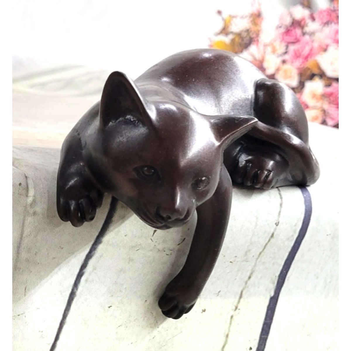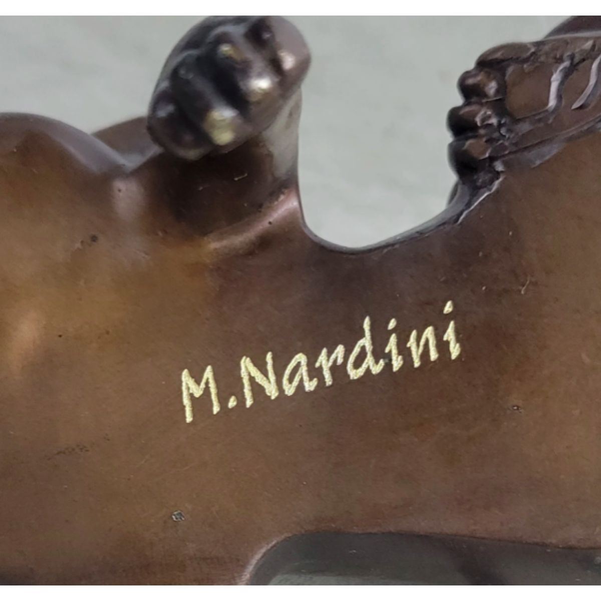 Little desktop cat signed sculpture. Lost wax casting method bronze, with brown patina. Signed by the artist, M. Nardini, on bottom with gilt stamping.Â