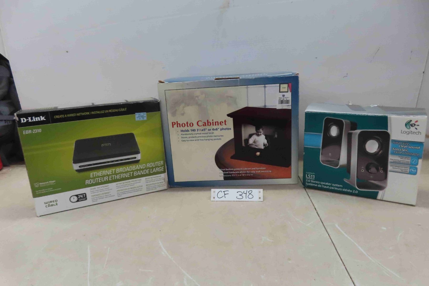 Desktop Speakers, Photo Cabinet and Ethernet Broadband Router - New Store Return