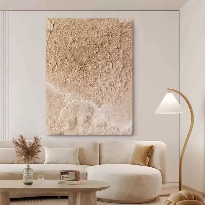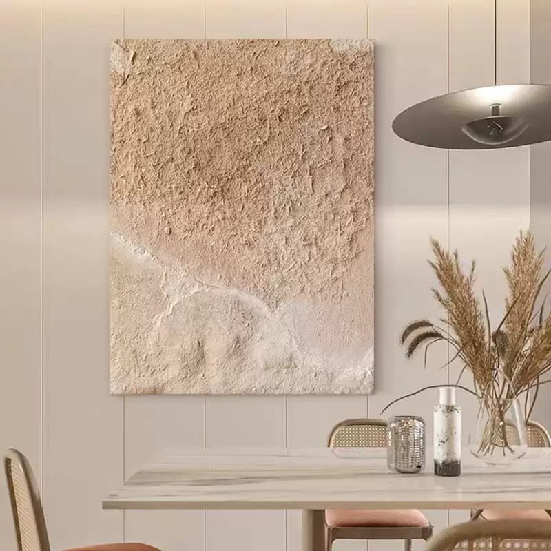 This artwork uses simple tones and intricate textures to depict the tranquility and vastness of the wilderness. The rough surface and soft colors intertwine, evoking a sense of exploration into the unknown and desolate, with a touch of solitude and profound beauty. Dimensions: 24 x 31 inches.