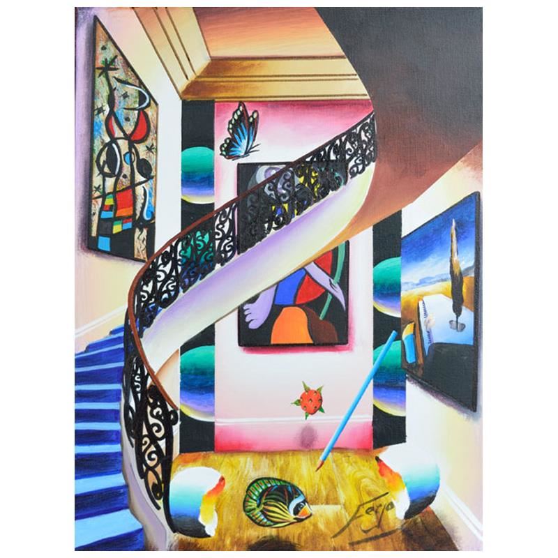 "Destiny" is an original painting, oil on canvas, by Ferjo. Hand signed by the artist, this piece comes with a letter of authenticity. Measures approx. 12" x 12" (image).
