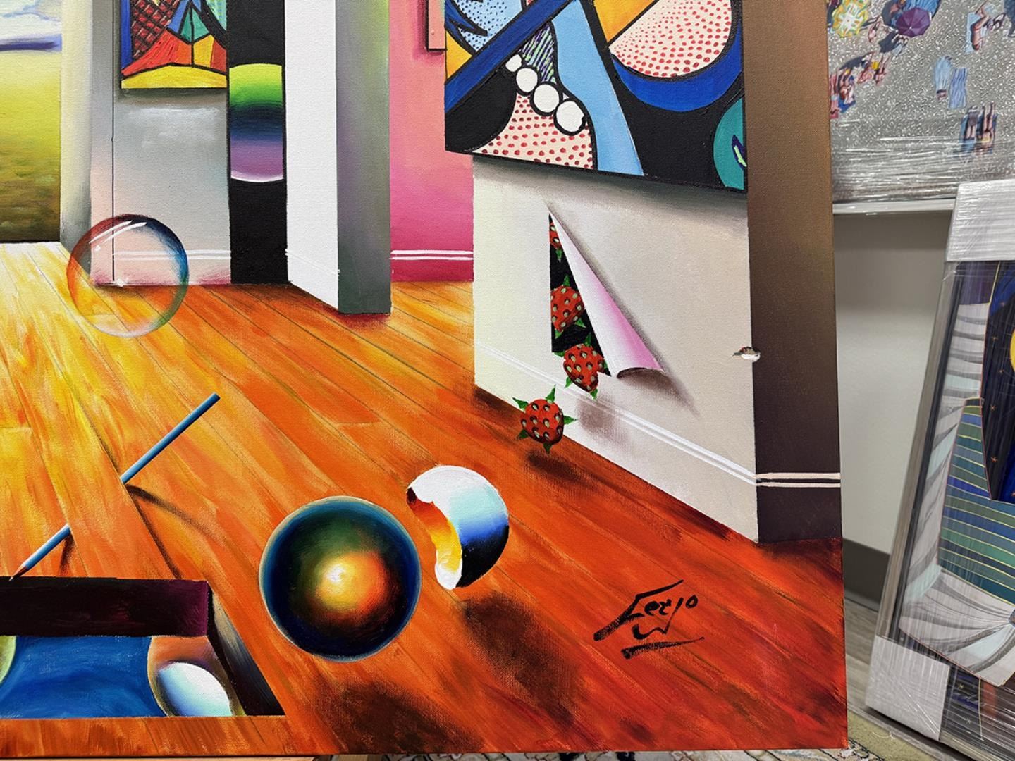 This exquisite origin acrylic artwork on canvas exemplifies the artist's mastery and creative vision. This hand signed piece comes frame and ready to hang. Art size 60x48" framed size 62x50"
