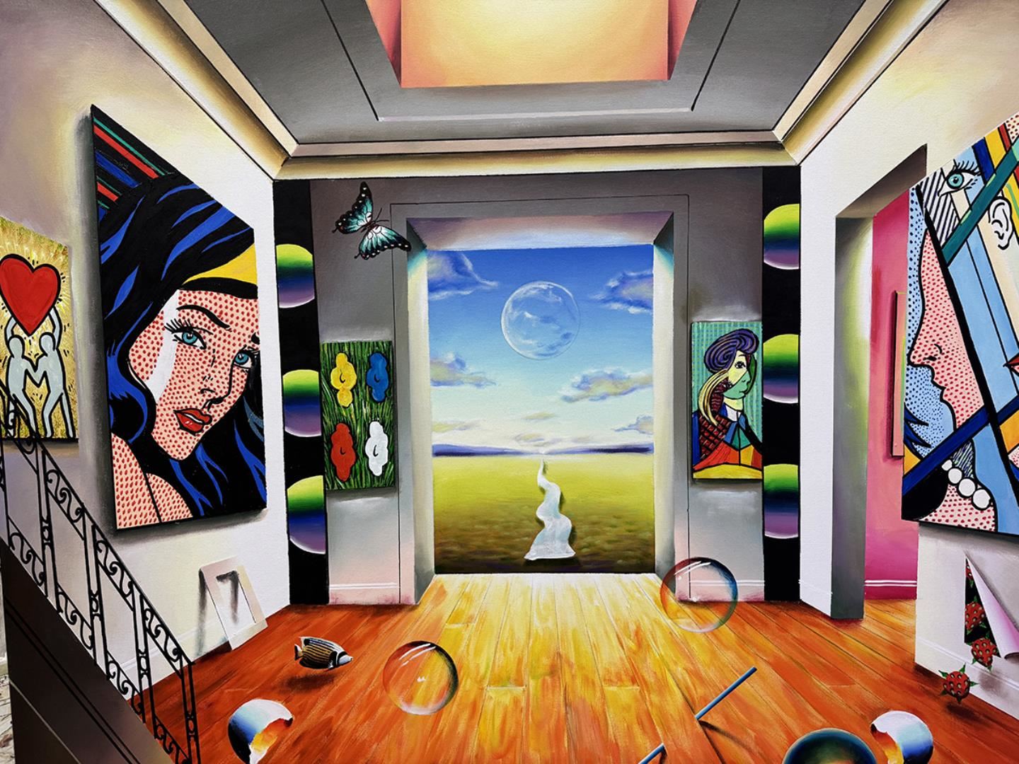 This exquisite origin acrylic artwork on canvas exemplifies the artist's mastery and creative vision. This hand signed piece comes frame and ready to hang. Art size 60x48" framed size 62x50"