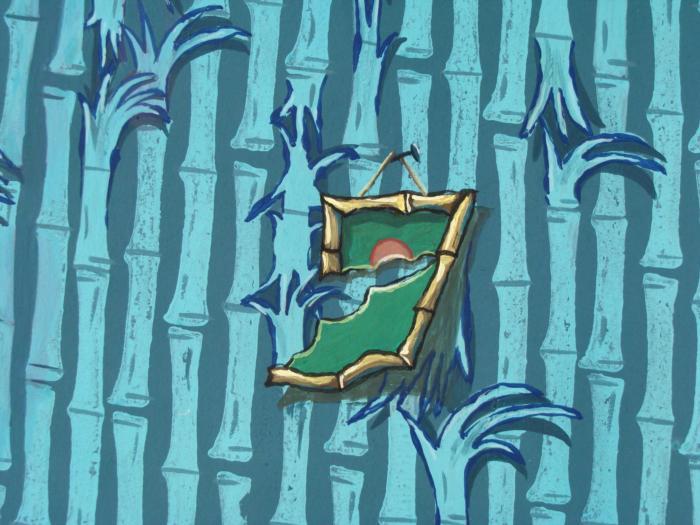 This original hand-painted background from the Nickelodeon TV show SpongeBob Squarepants. The story takes place under the deep blue sea in Bikini Bottom, where SpongeBob resides. SpongeBob, who is a yellow, porous sponge, is your typical happy-go-lucky character, as he is always cheerful and enjoys making people laugh. Patrick Star, SpongeBob's neighbor who is a starfish, is your average children's show idiot, as he boasts knowing nothing and is often getting himself into ridiculous situations. Between the homes of these two lies the home of the miserable Squidward, a squid, who is known for being grouchy and playing tricks on SpongeBob and Patrick. Both SpongeBob and Squidward work at the Krusty Krab, a fast food business run by the greedy money-loving Mr. Krabs, a crab, the arch rival of the evil, possibly misunderstood, Plankton. Another neighbor, Sandy Cheeks, an athletic squirrel who normally wears an astronaut's space suit, was introduced in "Tea at the Treedome." She spends most of her time inventing and experimenting.SpongeBob's house is being destroyed. Original Production Background Overall Size of Background: 10" x 14" Very good conditionOriginal Production Backgrounds are used in the making of the final version of animated productions. The background establishes the location and the overall good mood of the scenee. Typically, a background layout artist creates a drawing to establish the content of the scene, placement of characters, perspective and camera angle. Based on this drawing, the background artist creates a preliminary painting to confirm all of the scenes details, then the final production background which is used in the filming of the scene. When these backgrounds are individually photographed behind the progression of production cels, and projected at a rapid succession, the images in the foreground appear to move, creating an animated scene. The background is ready to be matted and framed. It is a colored background with the animator's notations at the bottom.