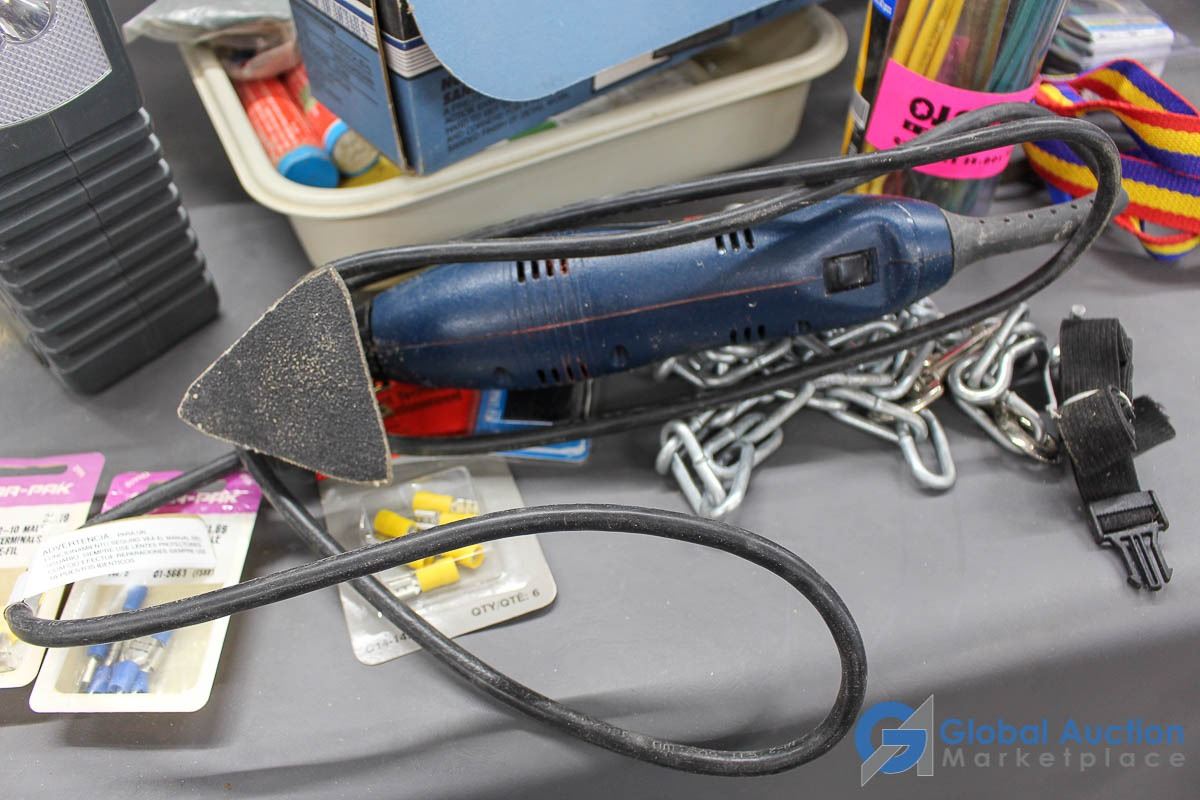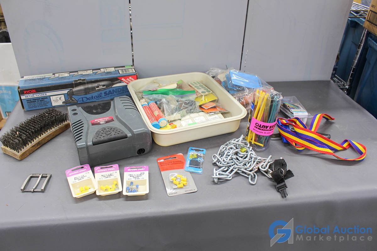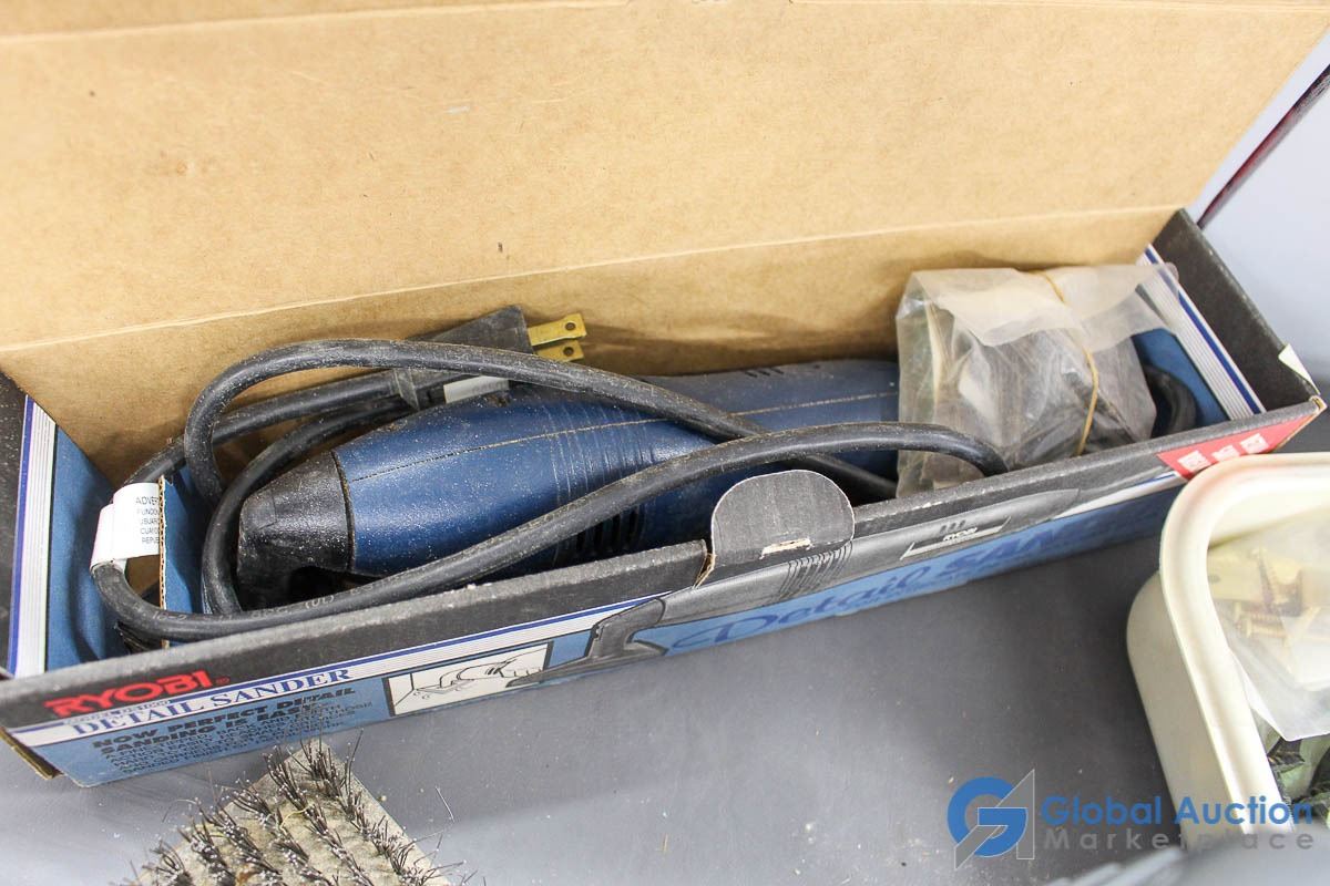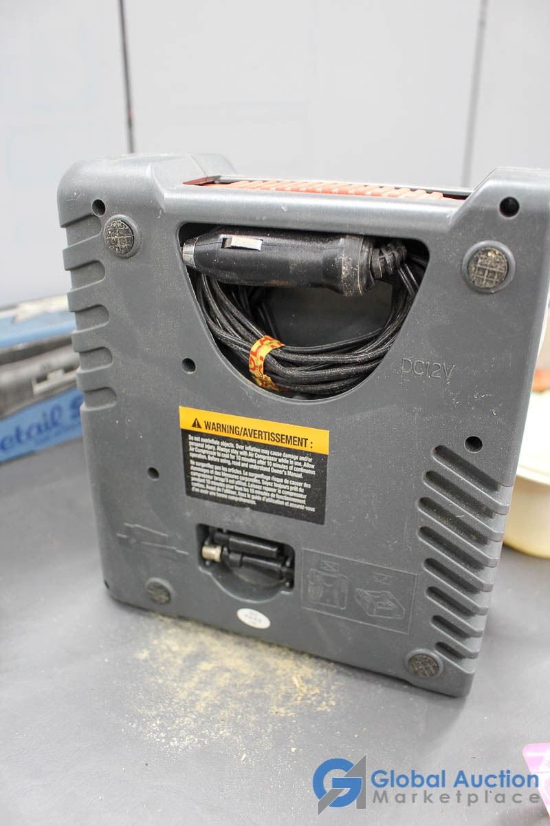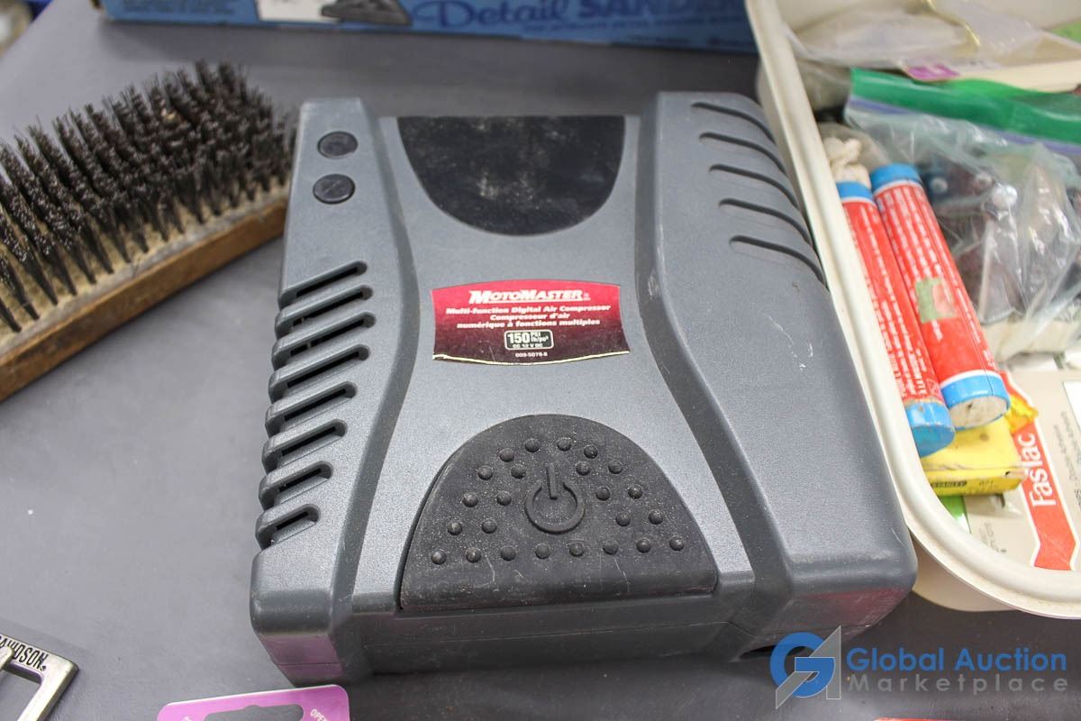 **Detail Sander, 12v Air Compressor, Steel Brush & Assorted