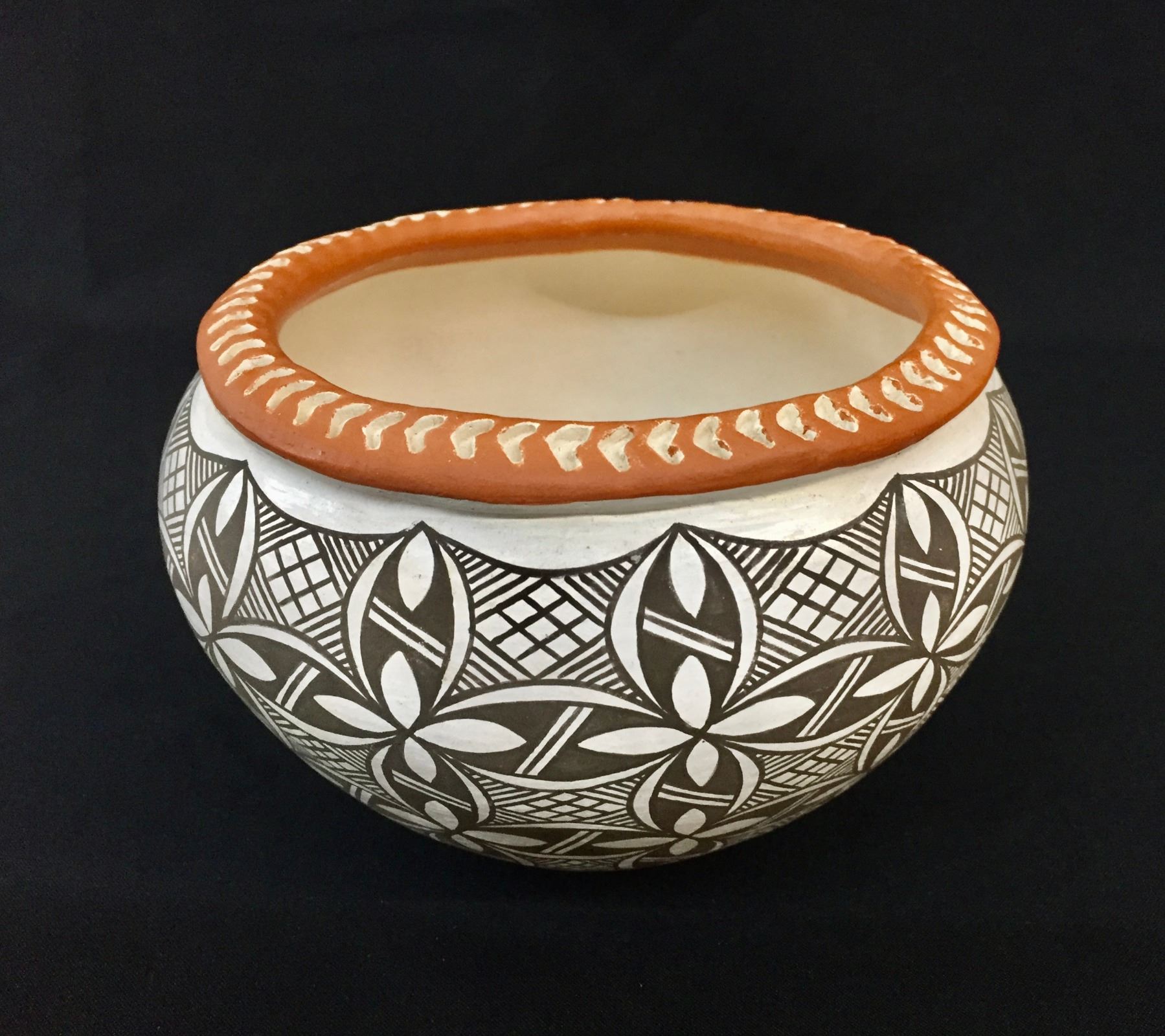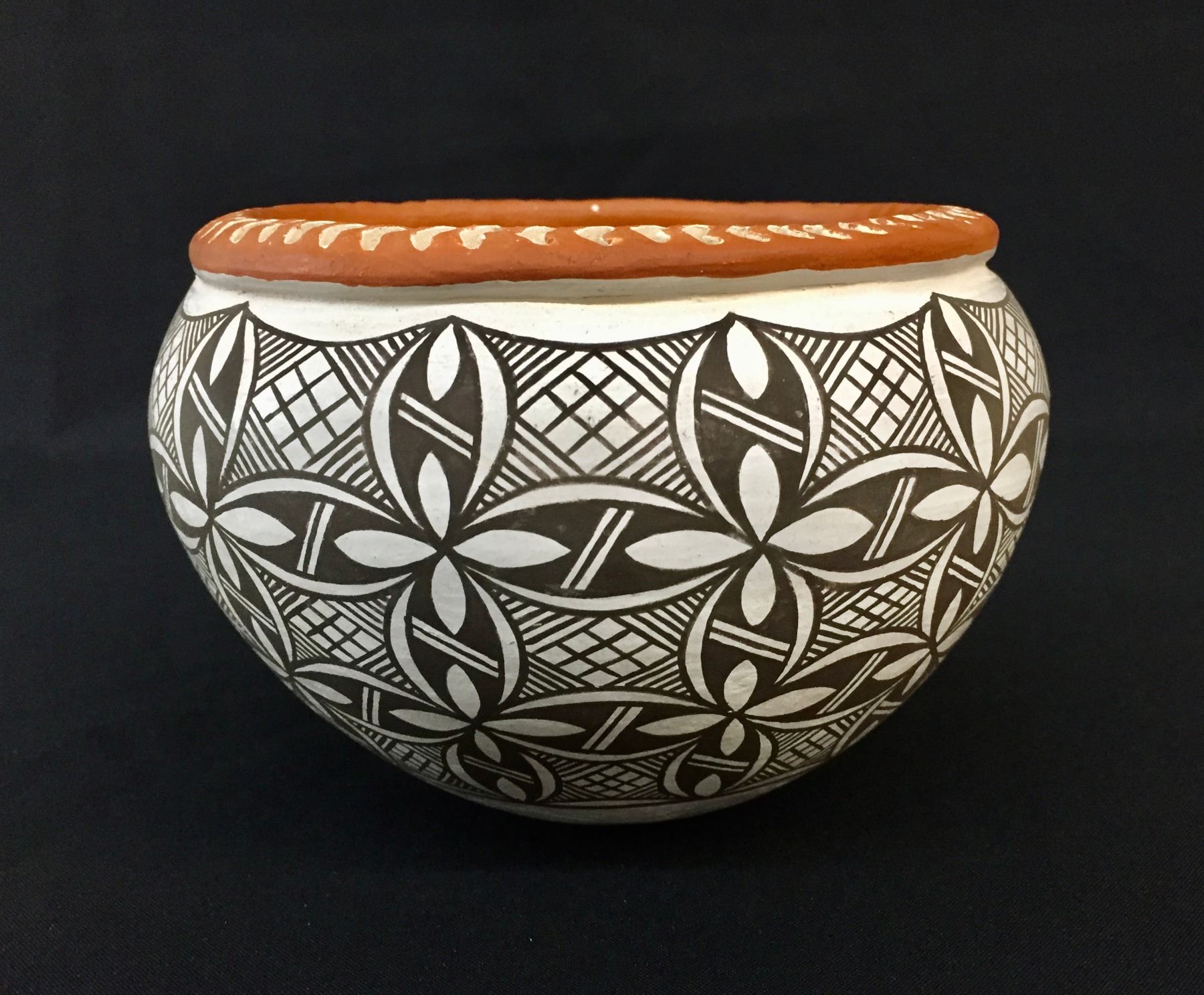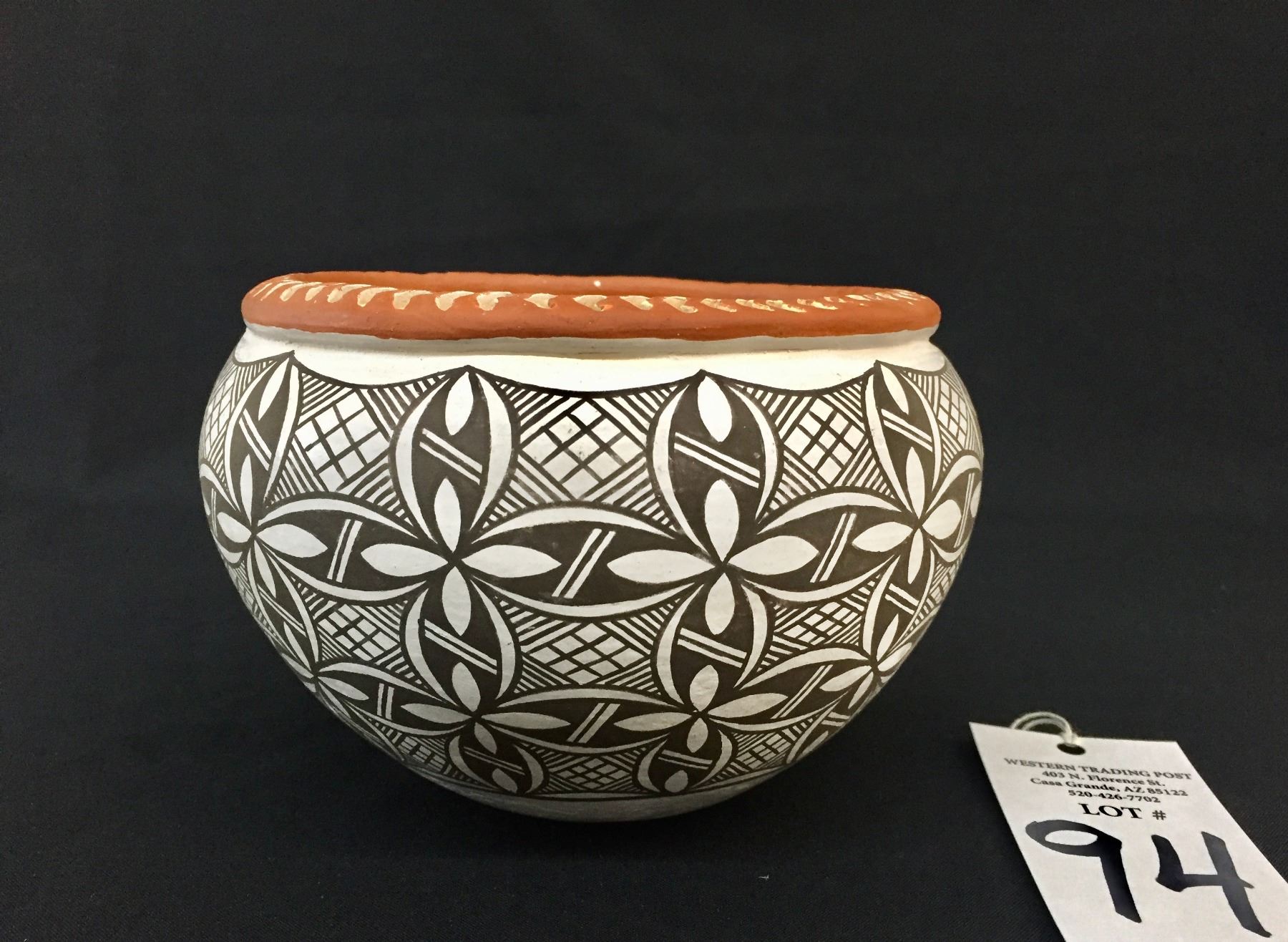 Description: Presented for sale in this lot is a very nice, hand painted and hand crafted Acoma Pot. This is an earlier work of Adrienne Roy Keene who is a well known Acoma potter. Maker: Adrienne Roy Keene, Acoma Pueblo. Approx. Age: Circa 1970s. Size: 6-5/8”w x 4-1/2” tall. Condition: Good for its age, normal wear expected. Please look closely at the pictures - they are an important part of our description. Shipping: There will be a $10 handling / packaging fee for shipping this lot. The actual cost of postage will be added on top of that.