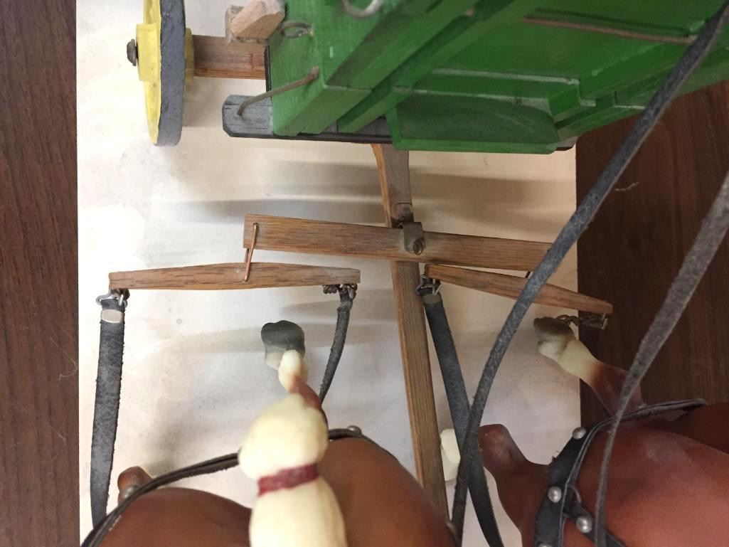 Presented for sale in this lot is a highly detailed, handmade wagon that is 1/20th scale. Everything works on it, just like a full size one. It comes with 2 Bryers horses and the driver is a toy that was thrown on there for looks. Maker: John Drost of South Dakota. Approx. Age: Circa early 2000s. Size: 27" long x 10" tall. Condition: Good for its age, normal wear expected. Please look closely at the pictures - they are an important part of our description. Shipping: There will be a $15 handling, packaging fee for shipping this lot. The actual cost of postage will be added on top of that.