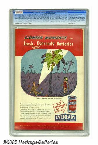<B>Detective Comics #107 (DC, 1946) CGC VF/NM 9.0 White pages.</B></I> Here's the second highest-graded copy CGC has certified to date of this issue, which has a Dick Sprang cover and Win Mortimer art. Joining Batman inside the comic are Air Wave, Slam Bradley, the Boy Commandos, and others. Overstreet 2005 VF/NM 9.0 value = $703; NM- 9.2 value = $950. CGC census 3/05: 1 in 9.0, 1 higher.