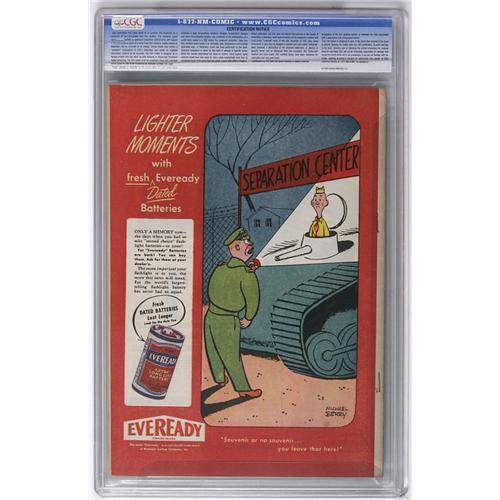 <B>Detective Comics #111 (DC, 1946) CGC VF- 7.5 Off-white to white pages.</B></I> Win Mortimer drew both this issue's cover and the interior story -- you might say it's a Win-Win situation. Backup features include Air Wave (with George Roussos art), the Boy Commandos (with Curt Swan art), and long-running Golden Age gumshoe Slam Bradley. Overstreet 2006 VF 8.0 value = $456. CGC census 1/06: 1 in 7.5, 20 higher. <I>From the Collection of Harold Curtis.</B></I>