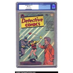 Detective Comics #115 (DC, 1946) CGC NM+ 9.6 Cream to off-white pages. A Batman and Robin adventure about the man who lived in a glass house. An interesting cover and one of the nicest copies to be graded by CGC. This book displays beautifully with very vivid colors and no visible imperfections. No high-grade collection should be without this fantastic book. Overstreet 2002 NM 9.4 value = $800. Important notice: We expect to be auctioning lots at the rate of 200-250 per hour. Sometimes eBay Premier live bid software cannot keep up with that pace, so we strongly recommend that you place a realistic proxy bid now as insurance to avoid disappointment. Also please note that all Heritage/CAA lots purchased through eBay Premier carry a 20% Buyer's Premium. Please make sure you read the Terms and Conditions.