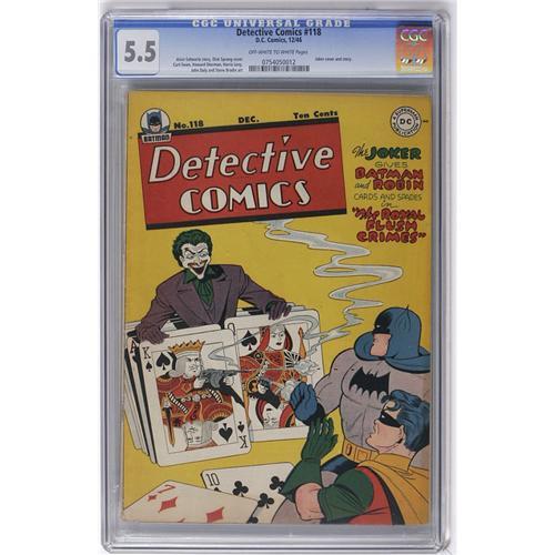 <B>Detective Comics #118 (DC, 1946) CGC FN- 5.5 Off-white to white pages.</B></I> Dick Sprang cover. Interior art by Howard Sherman (Batman) and Curt Swan (Boy Commandos). Overstreet 2006 FN 6.0 value = $312. CGC census 1/06: 1 in 5.5, 14 higher. <I>From the Collection of Harold Curtis.</B></I>