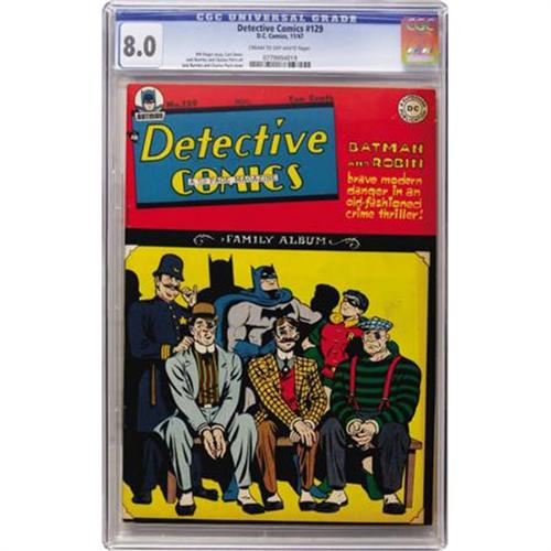 <B>Detective Comics #129 (DC, 1947) CGC VF 8.0 Cream to off-white pages.</B></I> Jack Burnley cover. Burnley and Curt Swan art. Overstreet 2007 VF 8.0 value = $438. CGC census 6/07: 3 in 8.0, 2 higher.<BR><BR><b>Shipping:</b> Comics - Slabbed (certified) (<a target="_blank" href="http://www.heritageauctions.com/common/shipping.php">view shipping information</a>)