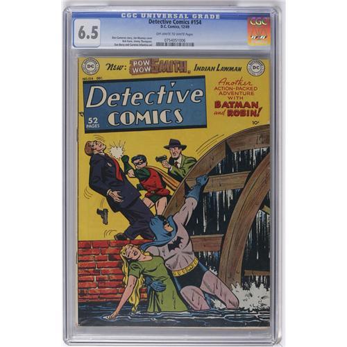 <B>Detective Comics #154 (DC, 1949) CGC FN+ 6.5 Off-white to white pages.</B></I> Jim Mooney cover. Bob Kane and Charles Paris art. Pow-Wow Smith backup feature with Carmine Infantino art. Overstreet 2006 FN 6.0 value = $186; VF 8.0 value = $388. CGC census 1/06: 1 in 6.5, 6 higher. <I>From the Collection of Harold Curtis.</B></I>