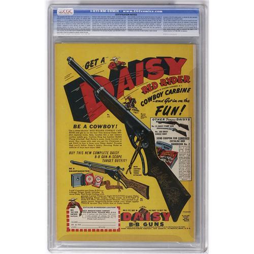 <B>Detective Comics #157 (DC, 1950) CGC VF+ 8.5 Off-white pages.</B></I> The nice cover colors of this original-owner copy are sure to catch your eye. The cover illustration by Win Mortimer is about as close to a "good girl" cover as you're going to find on a Batman book! The issue also has an adventure of Pow-Wow Smith, Indian Lawman, drawn by Carmine Infantino. Overstreet 2006 VF 8.0 value = $388; VF/NM 9.0 value = $614. CGC census 1/06: 1 in 8.5, 2 higher. <I>From the Collection of Harold Curtis.</B></I>