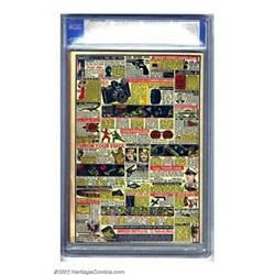 Detective Comics #19 (DC, 1938) CGC VG 4.0 Cream to off-white pages. Not considered as uncommon as most of the other first 30 issues of the venerable DC title, it is, however, significant that CGC has to date graded only three other copies, and this mid-grade copy ranks as the nicest. The spine on this book is solid and appears to be worthy of a Very Fine, or even higher grade. The main defect is some staining along the front right border and along the back left border. Aside from that, it looks to be a higher grade. The nice film-noir cover is by Leo O'Mealia, according to the one source we found who would venture a guess. Overstreet 2002 GD 2.0 value = $566; FN 6.0 value = $1,700. Important notice: We expect to be auctioning lots at the rate of 200-250 per hour. Sometimes eBay Premier live bid software cannot keep up with that pace, so we strongly recommend that you place a realistic proxy bid now as insurance to avoid disappointment. Also please note that all Heritage/CAA lots purchased through eBay Premier carry a 20% Buyer's Premium. Please make sure you read the Terms and Conditions.