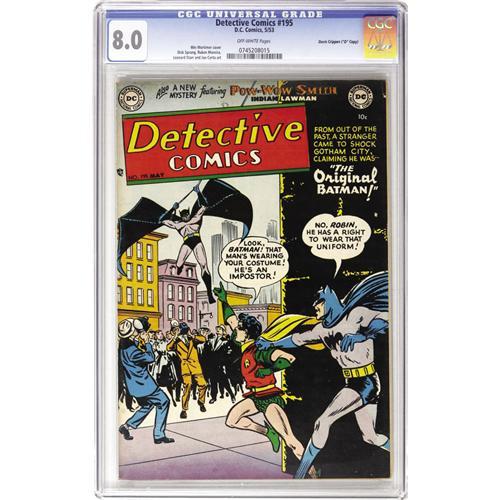 <B>Detective Comics #195 Davis Crippen ("D" Copy) pedigree (DC, 1953) CGC VF 8.0 Off-white pages.</B></I> Win Mortimer is credited with this issue's Batman cover, and Dick Sprang handled interior art on the Caped Crusader. Robotman and Pow-Wow Smith are the backup features. Overstreet 2006 VF 8.0 value = $317. CGC census 6/06: 1 in 8.0, 1 higher. <I>From the Crippen Collection.</B></I> <BR><BR><B>Important notice:</B> Heritage usually auctions material at the rate of 200-250 lots per hour. On some occasions eBay Live bid software or the Internet may not be able to keep up with the pace of the auction. We recommend placing a realistic absentee bid now as insurance to avoid disappointment. Occasionally the auctioneer may eliminate or reject an eBay Live bid, and the auctioneer may also reopen a lot after the close of the eBay live bidding (usually because we missed an audience bid), and may reject your bid even if it shows you as the winning bidder. By bidding via eBay Live, you agree that Heritage may award the lot to another bidder at its sole discretion under the circumstances described above or any other reasonable circumstances. Since eBay bids are not shown to us until we open the lot on the floor, we treat those bids just like floor bids. In most cases the floor responds before the eBay bid is presented to us, due to Internet lag time, so for consistency we have made it a policy that floor bids are always considered first over tie eBay live bids. Also please note that all Heritage lots purchased through eBay Live carry a 22.5% Buyer's Premium. Please make sure you read the Terms and Conditions before you bid. This lot is being auctioned in conjunction with a live floor auction by Heritage Auction Galleries. All final auction and invoice information will be supplied by Heritage Auction Galleries, and all other information should be considered preliminary. Lot:41001 <BR><BR><B>Winning Notification and Billing:</B> After the FINAL session in this auction is complete, Heritage will send e-mail and snail mail invoices. This process normally takes several days. All final auction and invoice information will be supplied by Heritage Auction Galleries, and all other information should be considered preliminary. <BR><BR>This auction will be conducted on a live auction floor and over the Internet through eBay Live. If you choose to place an absentee bid, please take a moment to <font color='#0000ff'><u><a href='http://pages.ebay.com/liveauctions/help/before/laabsentee.html'>learn how eBay Live absentee bidding works</a></u></font><font color='#000000'>