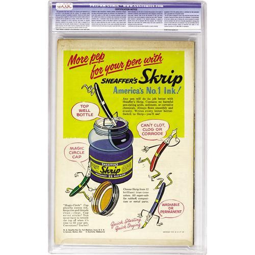 48C. COMICS – Comic books sold referencing a third-party grading service are sold "as is" without any express or implied warranty. Certain warranties may be available from the grading services and the Bidder is referred to them for further details: Comics Guaranty Corporation (CGC), P.O. Box 4738, Sarasota, FL 34230. Subject to sections 57 and 58, bidders who intend to challenge authenticity or provenance of a lot must notify Auctioneer in writing within thirty (30) days of the Auction's conclusion. Auctioneer's maximum liability shall not exceed the high bid on that lot, which bid shall be deemed for all purposes the value of the lot. In the event Auctioneer cannot deliver the lot or subsequently it is established that the lot lacks title, provenance, authenticity, or other transfer or condition issue is claimed, Auctioneer's liability shall be limited to recission of sale and refund of purchase price. After one year has elapsed, Auctioneer's maximum liability shall be limited to any commissions and fees Auctioneer earned on that lot.