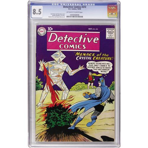 <B>Detective Comics #272 (DC, 1959) CGC VF+ 8.5 Off-white to white pages.</B></I> Curt Swan and Stan Kaye cover. Overstreet 2006 VF 8.0 value = $124; VF/NM 9.0 value = $185. CGC census 3/07: 1 in 8.5, 1 higher. <I> From the Warren Hall Collection.</B></I><BR><BR><b>Shipping:</b> Comics - Slabbed (certified) (<a target="_blank" href="http://www.heritageauctions.com/common/shipping.php">view shipping information</a>)