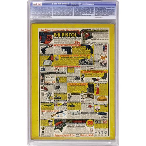 48C. COMICS – Comic books sold referencing a third-party grading service are sold "as is" without any express or implied warranty. Certain warranties may be available from the grading services and the Bidder is referred to them for further details: Comics Guaranty Corporation (CGC), P.O. Box 4738, Sarasota, FL 34230. Subject to sections 57 and 58, bidders who intend to challenge authenticity or provenance of a lot must notify Auctioneer in writing within thirty (30) days of the Auction's conclusion. Auctioneer's maximum liability shall not exceed the high bid on that lot, which bid shall be deemed for all purposes the value of the lot. In the event Auctioneer cannot deliver the lot or subsequently it is established that the lot lacks title, provenance, authenticity, or other transfer or condition issue is claimed, Auctioneer's liability shall be limited to recission of sale and refund of purchase price. After one year has elapsed, Auctioneer's maximum liability shall be limited to any commissions and fees Auctioneer earned on that lot.