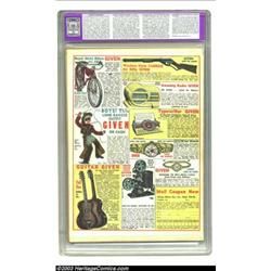 Detective Comics #34 (DC, 1939) Apparent FN/VF 7.0 Slight (P) Off-white pages. Creig Flessel's Crimson Avenger illustration displaces Batman from the cover spot, but this issue of Detective was the last without Batman on the cover! The interior contains a classic splash that was recycled the next year in Batman #1. CGC notes, "Restoration includes: color touch, piece added, cover and centerfold reinforced." Overstreet 2003 FN 6.0 value = $1,377; VF 8.0 value = $3,098. Important notice: Heritage usually auctions material at the rate of 200-250 lots per hour. On some occasions eBay Live bid software or the Internet may not be able to keep up with the pace of the auction. We recommend placing a realistic absentee bid now as insurance to avoid disappointment. Occasionally the auctioneer may eliminate or reject an eBay Live bid, and the auctioneer may also reopen a lot after the close of the eBay live bidding (usually because we missed an audience bid), and may reject your bid even if it shows you as the winning bidder. By bidding via eBay Live, you agree that Heritage may award the lot to another bidder at its sole discretion under the circumstances described above or any other reasonable circumstances. Also please note that all Heritage lots purchased through eBay Live carry a 20% Buyer's Premium. Please make sure you read the Terms and Conditions before you bid.