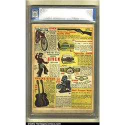 Detective Comics #34 (DC, 1939) CGC FN+ 6.5 Cream to off-white pages. This pre-Robin issue is the very last to feature a non-Batman character on the cover, instead showing the Crimson Avenger about to hurl his adversary off the side of a ship, compliments of the great Creig Flessel. Detective #27-38 rarely turn up in unrestored condition better than FN. This book is tight and sharp, with a discolored lower staple and rounded corners being the main defects. Overstreet 2002 FN 6.0 value = $1,314. Important notice: We expect to be auctioning lots at the rate of 200-250 per hour. Sometimes eBay Premier live bid software cannot keep up with that pace, so we strongly recommend that you place a realistic proxy bid now as insurance to avoid disappointment. Also please note that all Heritage/CAA lots purchased through eBay Premier carry a 20% Buyer's Premium.