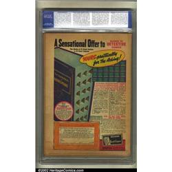 Detective Comics #38 (DC, 1940) CGC VG- 3.5 Light tan to off-white pages. This is a big one -- the first-ever appearance of Robin the Boy Wonder -- the original sidekick. For a VG-, this copy presents itself quite well from the front. The central cover image is intact and clean. "William Leach" is written in pen just above Robin's cape. There is a small amount of chipping at the lower right front cover edge, and a very faint water spot on the back cover. This is a decent, respectable copy in much better condition than the few that usually come to market. Overstreet 2002 GD 2.0 value = $3,214; FN 6.0 value = $9,642. Important notice: We expect to be auctioning lots at the rate of 200-250 per hour. Sometimes eBay Premier live bid software cannot keep up with that pace, so we strongly recommend that you place a realistic proxy bid now as insurance to avoid disappointment. Also please note that all Heritage/CAA lots purchased through eBay Premier carry a 20% Buyer's Premium.